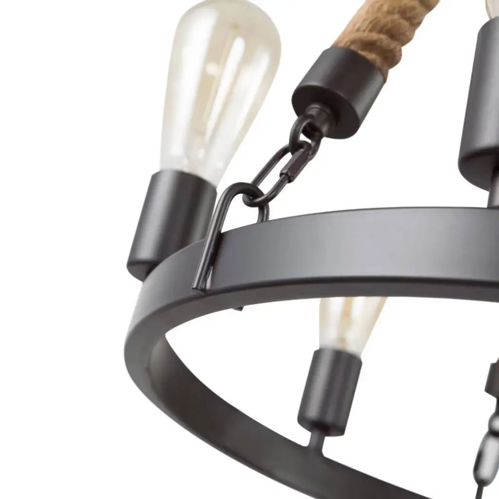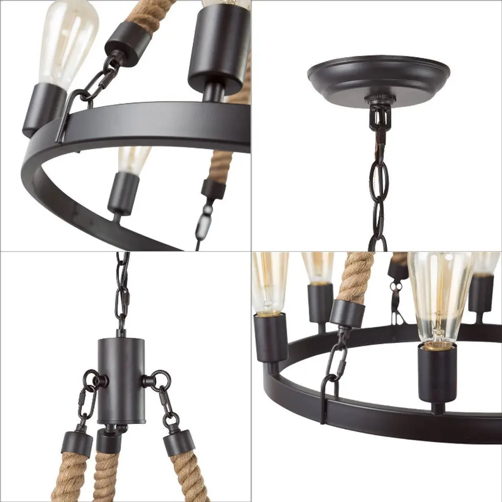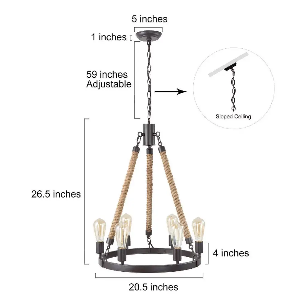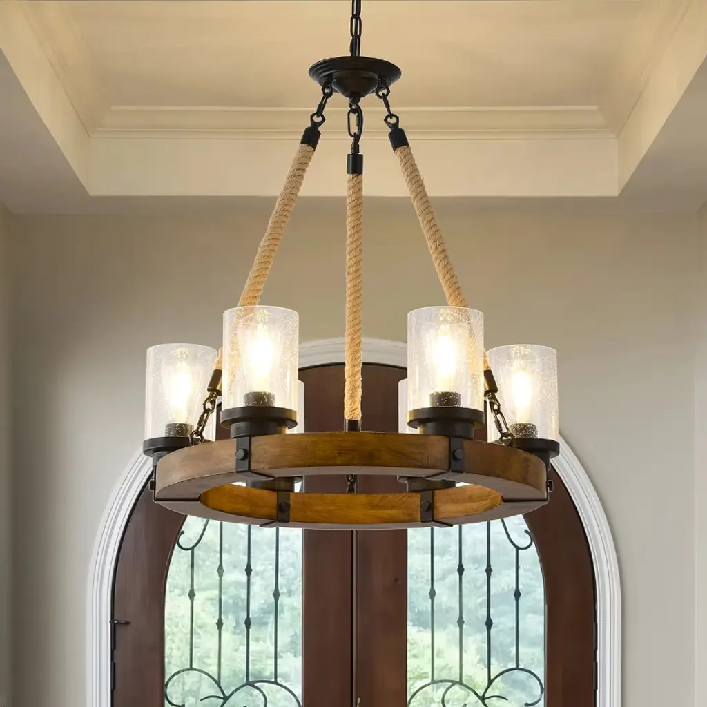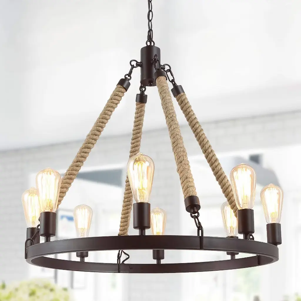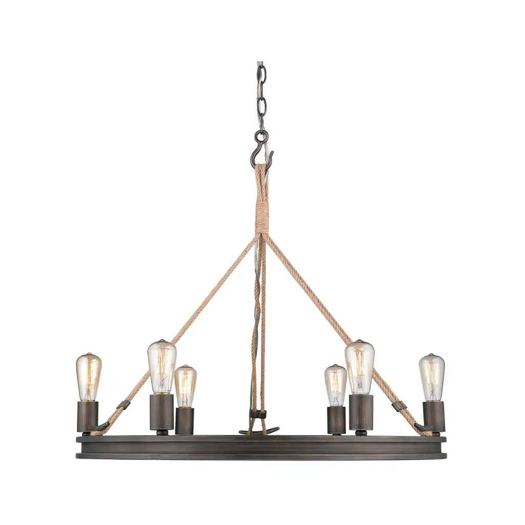 Lnc Laius 20.5-in Dining Room Wagon Wheel Chandelier, 6-light Brown With Rope, Modern Farmhouse