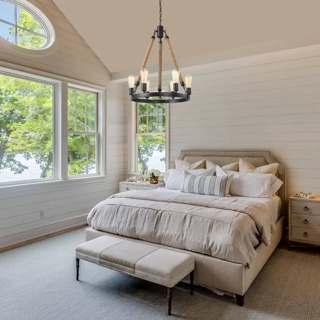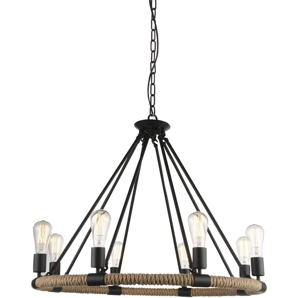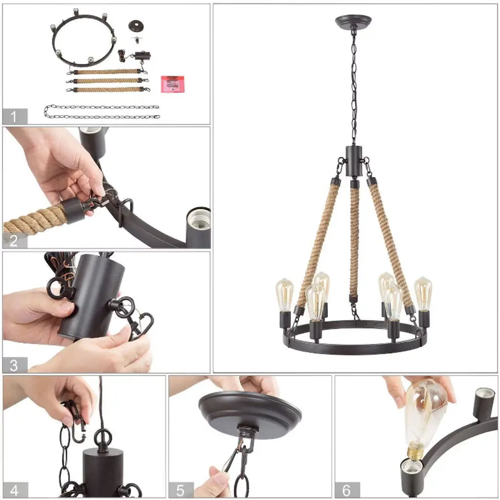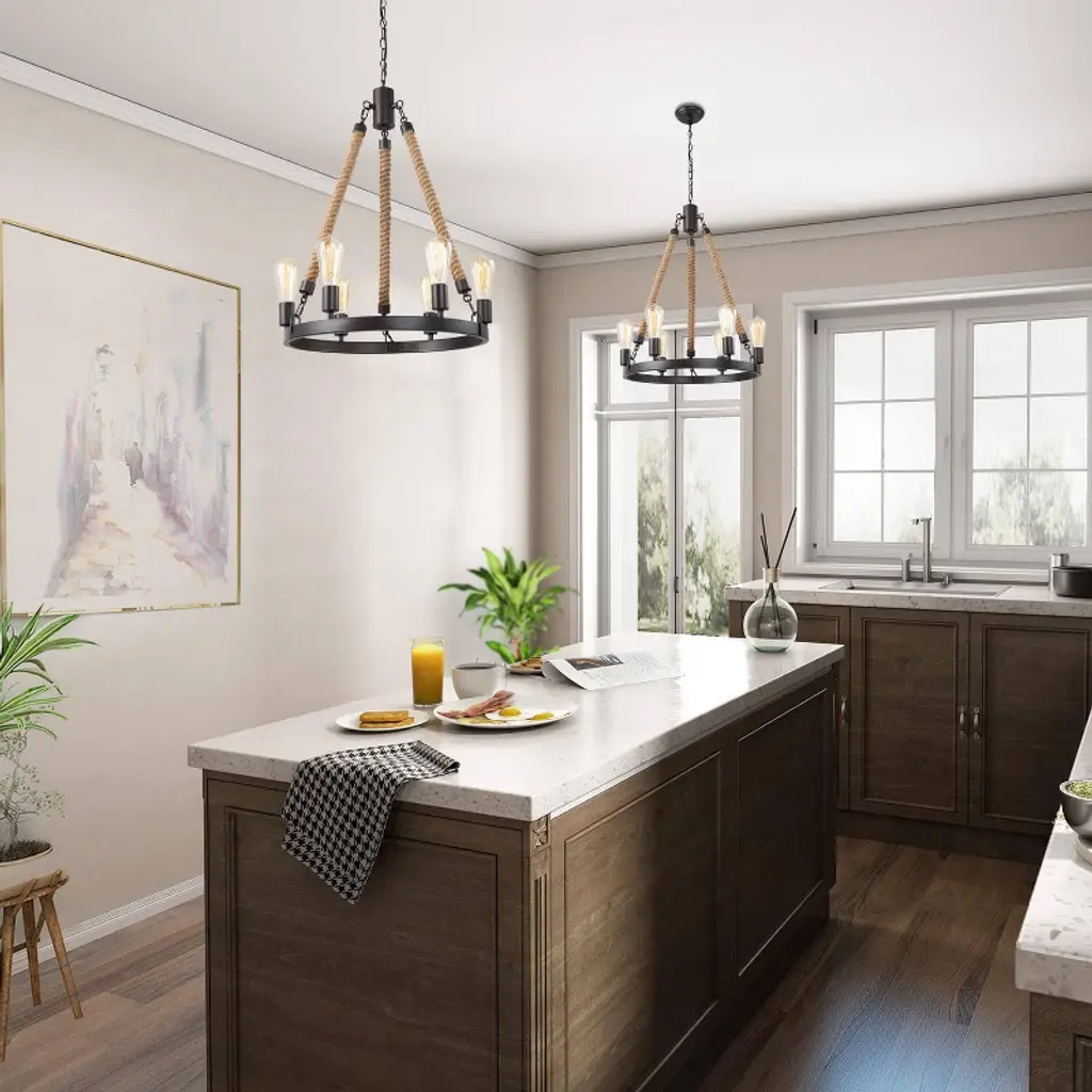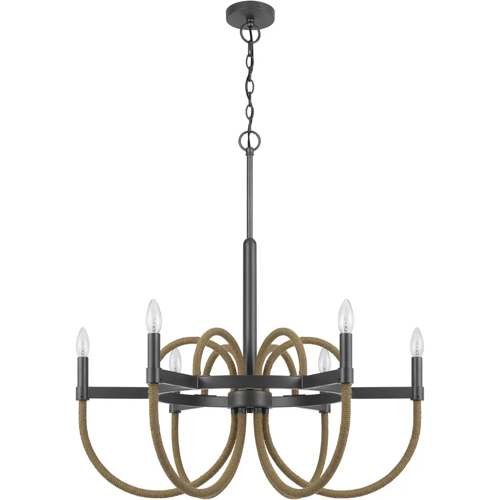 Lnc Laius 20.5-in Dining Room Wagon Wheel Chandelier, 6-light Brown With Rope, Modern Farmhouse