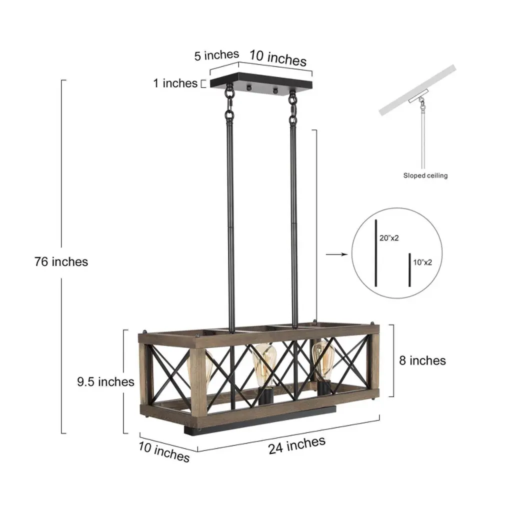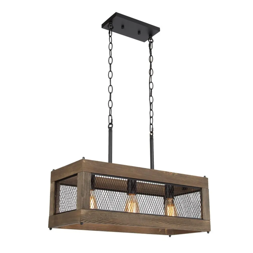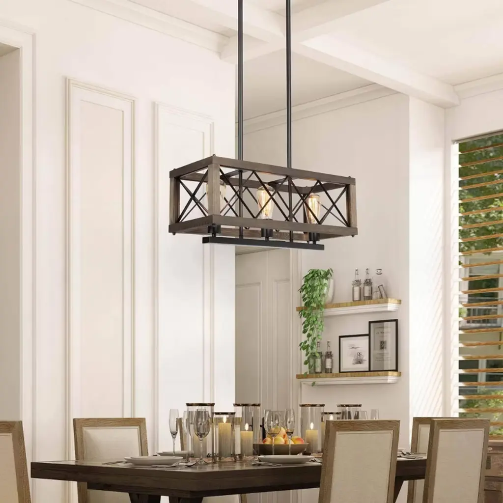 This modern farmhouse style pendant lighting is made of a combination of hollow wooden frame and iron, a natural wood grain shade like a rectangular cage, matte black design perfectly reflects the modern farmhouse style. The simple design is an excellent choice for your kitchen island, dining area, living room, or bedroom.
