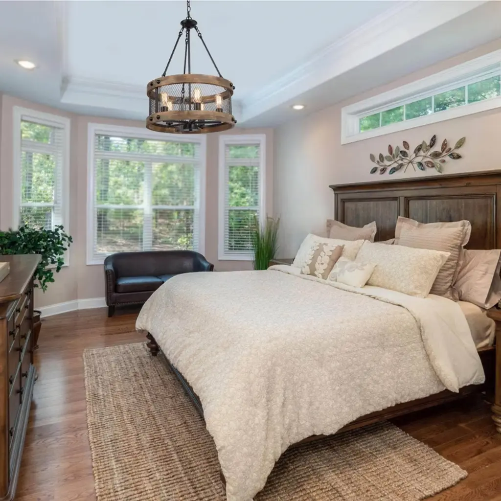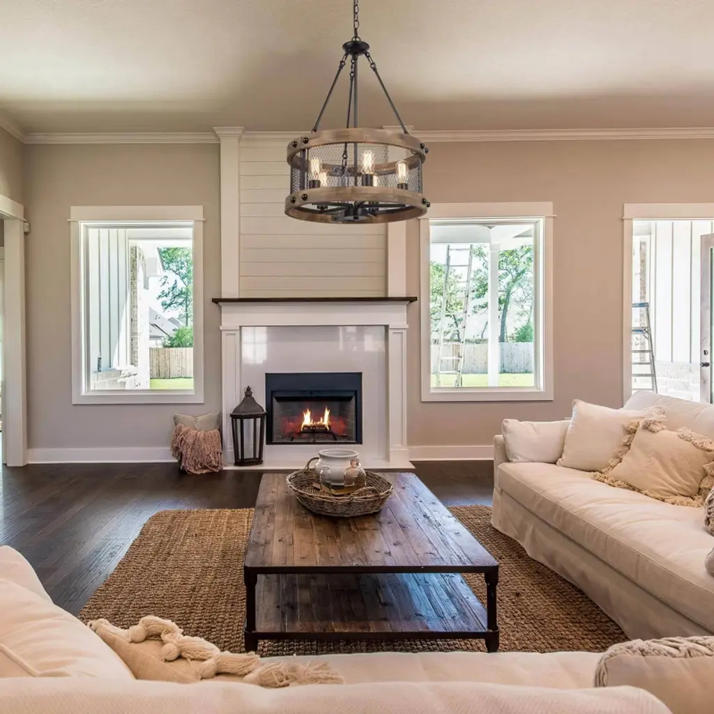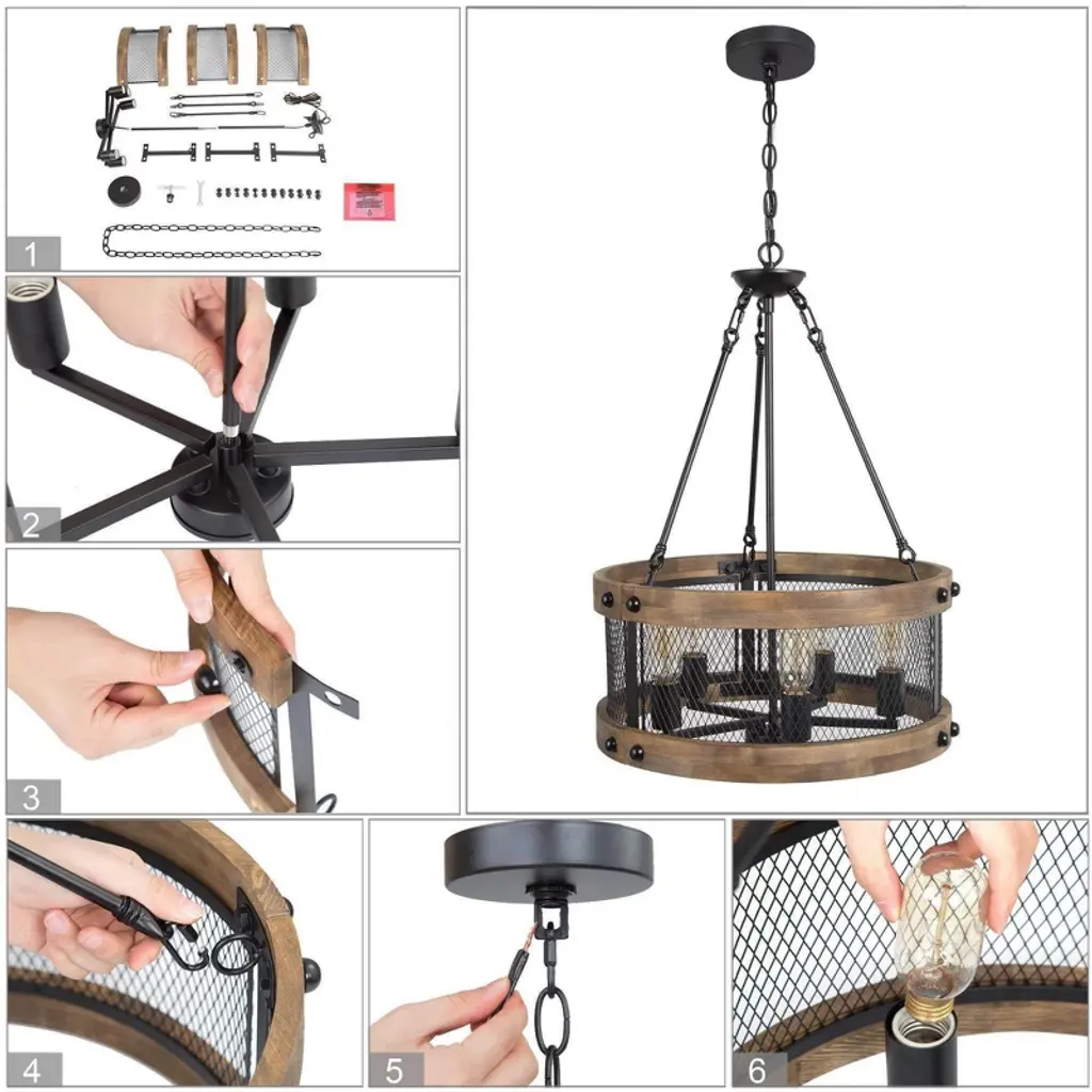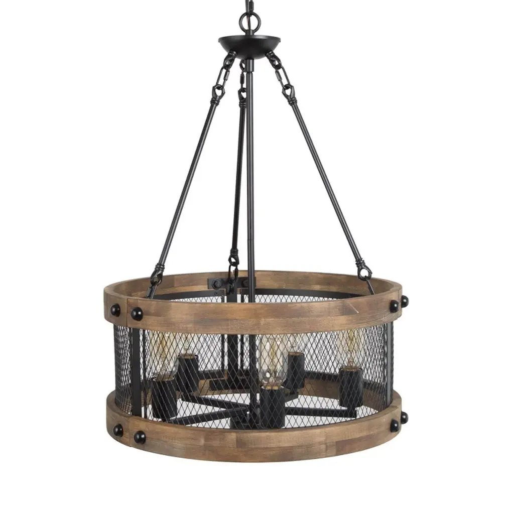 The LNC Aerissera drum farmhouse chandelier, crafted from sturdy metal and high-quality wood, is rustic and durable. The matte black finish combined with vintage natural wood creates a retro and elegant look, making it the perfect lighting fixture to enhance the ambiance of your dining room or entryway. With an adjustable overall height, it is also suitable for kitchen islands, bedrooms, living rooms, foyer, and more. Illuminate your home with our farmhouse chandelier, ideal for farmhouse, country, and vintage-style decor, and transform your space into a haven of elegance and charm.