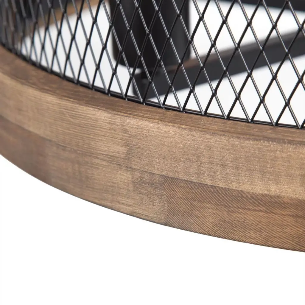 Lnc Martin 5-lights 19" Farmhouse Drum Small Chandelier, Matte Black And Distressed Brown Wood