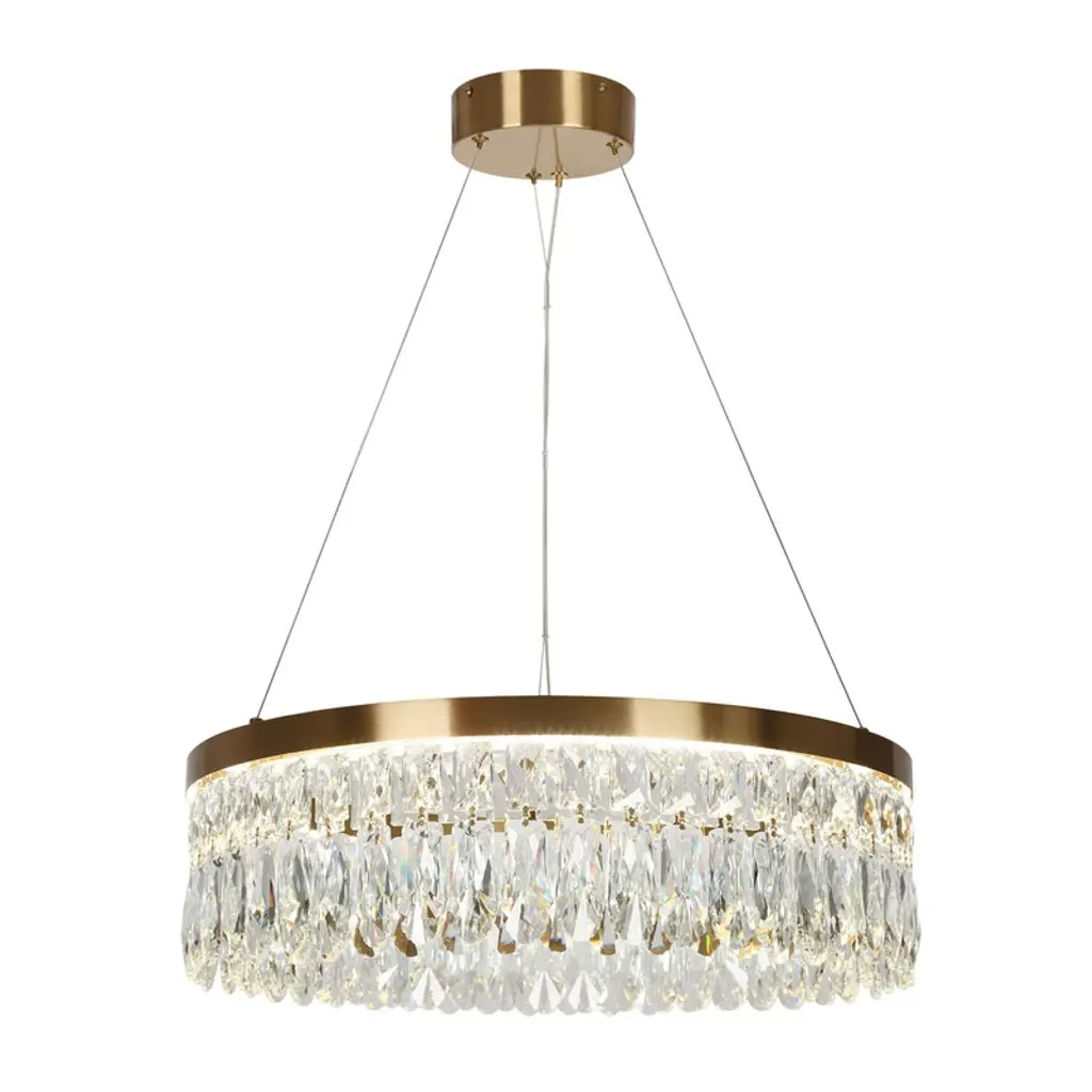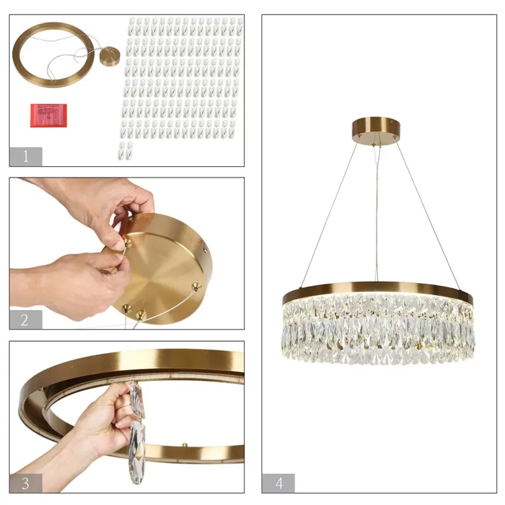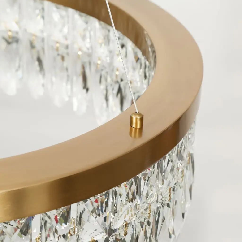 Step into the glamour of mid-century Paris with the LNC Musesonce 1-Light Polished Gold Crystal Chandelier — attribute to timeless luxury and modern sophistication. Inspired by the dazzling crystal chandeliers that once adorned the grand salons of 1960s Paris, this fixture reimagines classic opulence for the contemporary home. The brass-plated iron frame gleams with a warm polished gold finish, while meticulously cut K5 crystal glass discs shimmer like droplets of light, capturing and refracting every ray with captivating brilliance. Designed for the discerning eye, the Musesonce chandelier is not just lighting — it's a statement piece that exudes refined taste. Whether suspended above a dining table, gracing a chic bedroom, or illuminating a stylish entryway, its low-profile yet radiant form adds an instant touch of gallery-worthy drama. The integrated LED light casts a soft, warm glow, offering both energy efficiency and ambiance that adapts seamlessly to any mood.