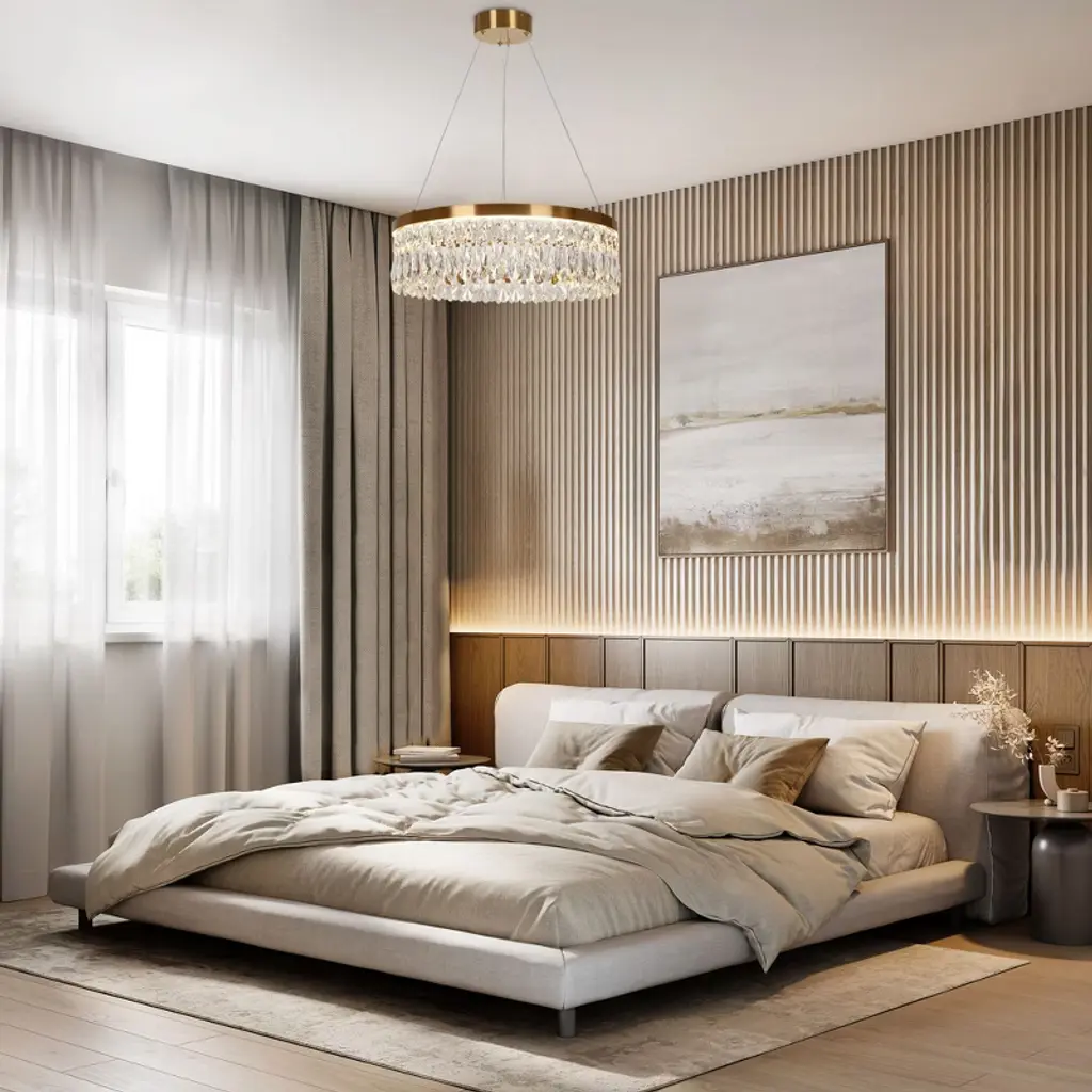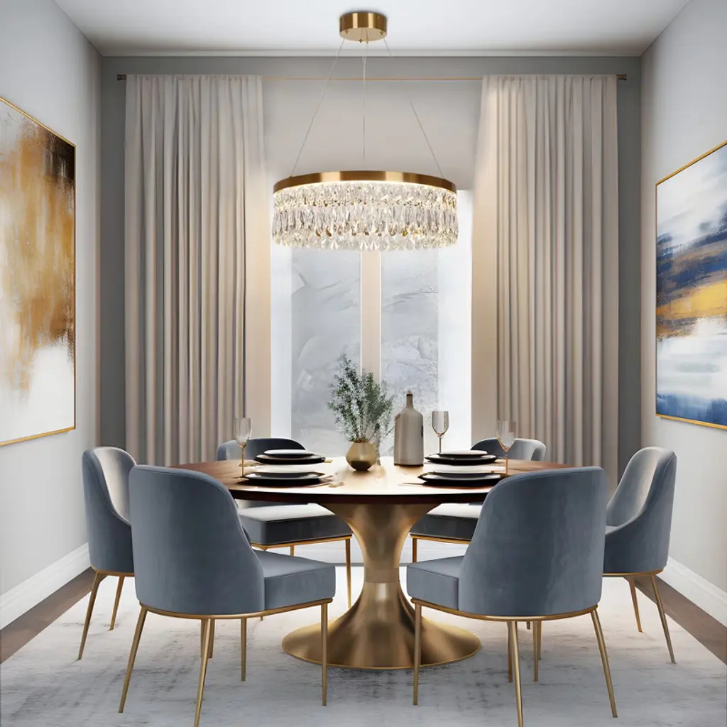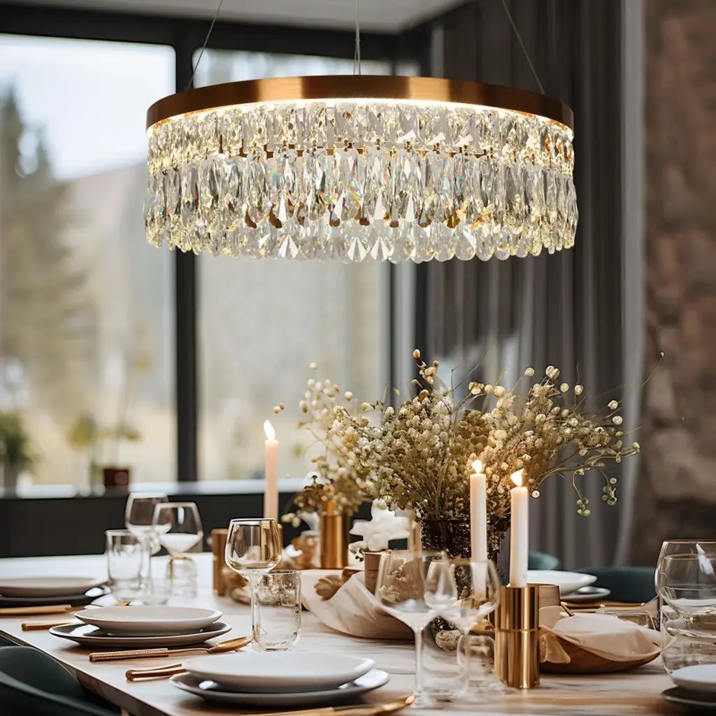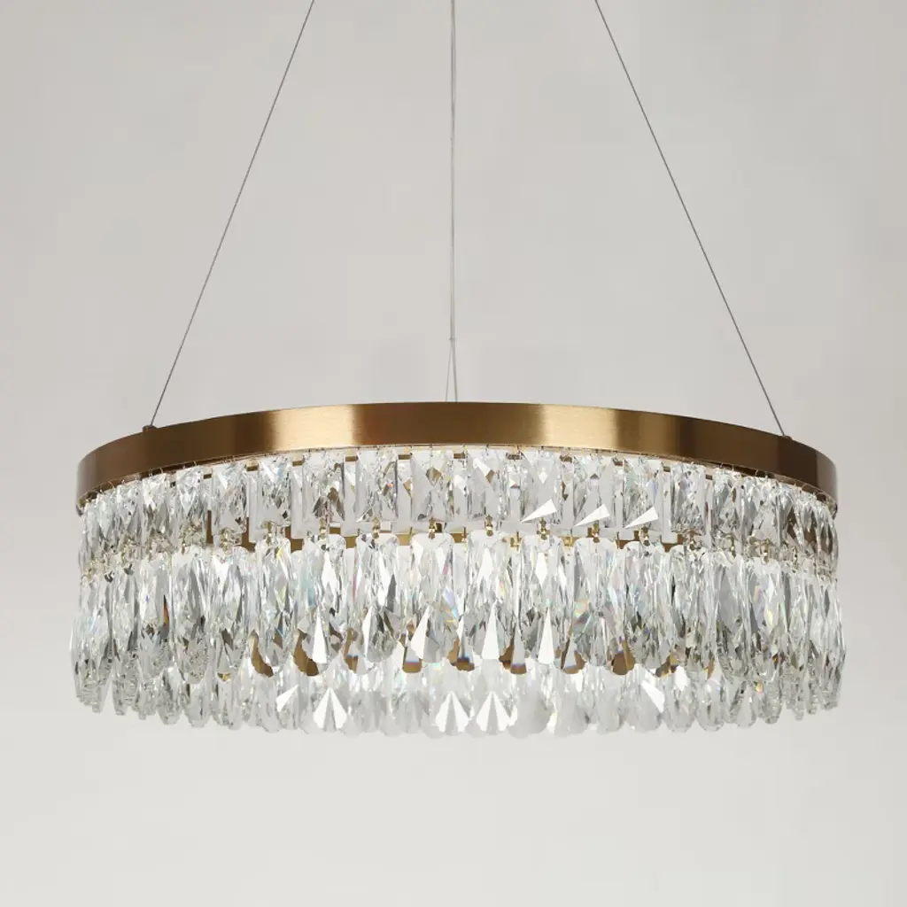 Step into the glamour of mid-century Paris with the LNC Musesonce 1-Light Polished Gold Crystal Chandelier — attribute to timeless luxury and modern sophistication. Inspired by the dazzling crystal chandeliers that once adorned the grand salons of 1960s Paris, this fixture reimagines classic opulence for the contemporary home. The brass-plated iron frame gleams with a warm polished gold finish, while meticulously cut K5 crystal glass discs shimmer like droplets of light, capturing and refracting every ray with captivating brilliance. Designed for the discerning eye, the Musesonce chandelier is not just lighting — it's a statement piece that exudes refined taste. Whether suspended above a dining table, gracing a chic bedroom, or illuminating a stylish entryway, its low-profile yet radiant form adds an instant touch of gallery-worthy drama. The integrated LED light casts a soft, warm glow, offering both energy efficiency and ambiance that adapts seamlessly to any mood.