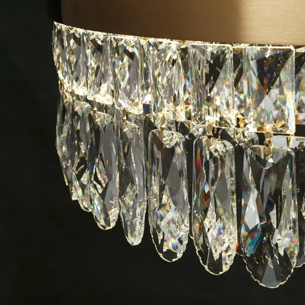 Lnc Musesonce 23.6-in Luxury Glam Drum Integrated Led Crystal Chandelier, Polished Gold Finish, 1-light