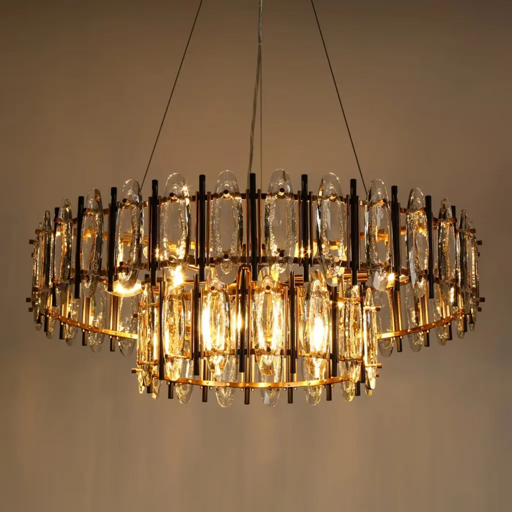 Lnc Noctiflorous 10-lights 32.3"modern Luxury Tiered Drum Crystal Chandelier, Gold And Black