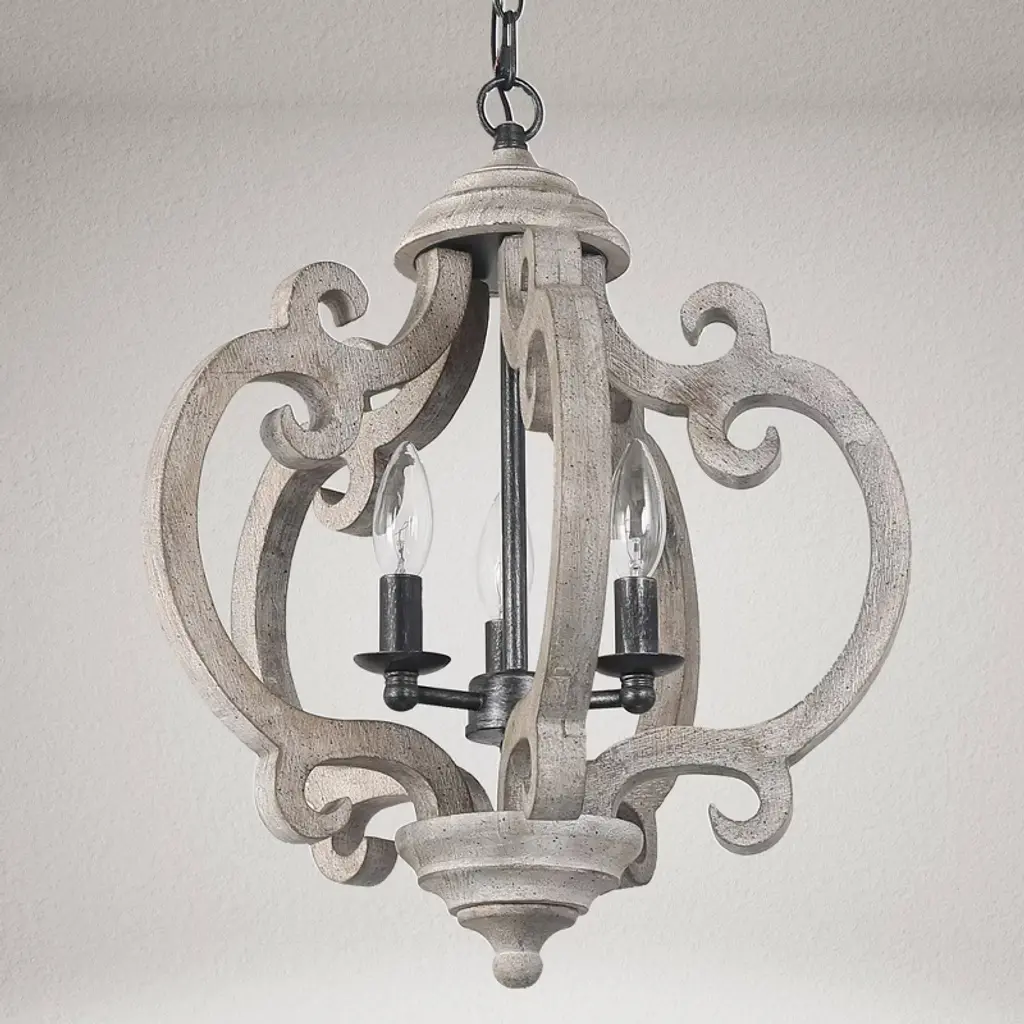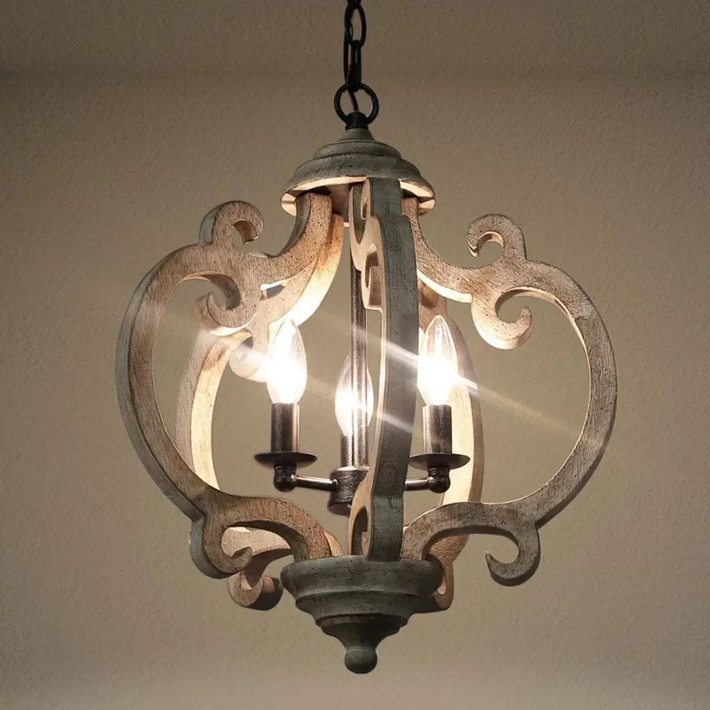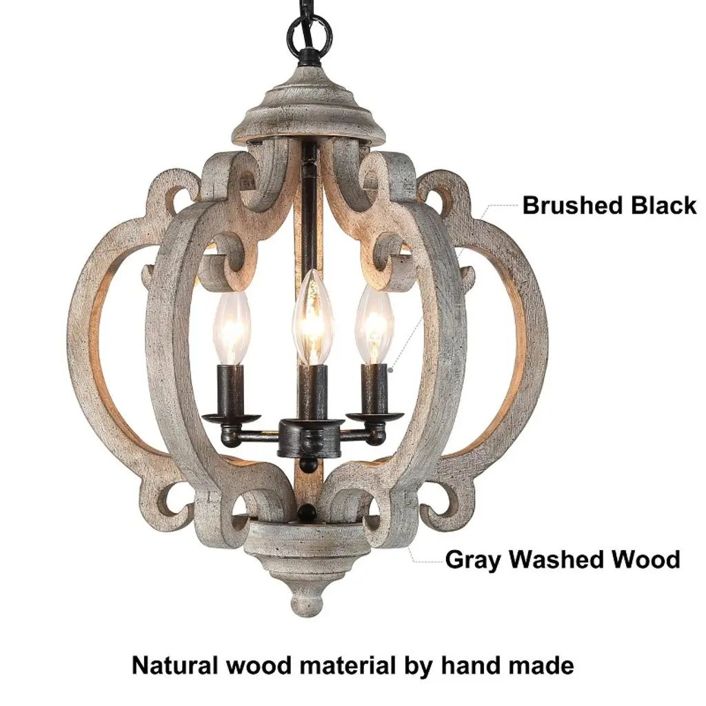 The Quaint classical collection from LNC adds industrial and rustic flair to your home. The farmhouse wood chandelier with geometric open natural wood-made cage adds a breezy touch to any space, while its hand-applied mottled black pairs perfectly with the bronze medal and wall d?or. This hand-crafted wood chandelier piece of LNC looks like flower petals blooming in spring. Featuring refined design weathered oak wood and antique forged iron artisan finish offer rustic flair in an iconic cage silhouette. Its vintage, weathered look not only alludes to simpler times, but the crisp edges and bold lines with open frames bring us back to a more modern style. This neutral versatile wood light fixture will surely provide comfort and elegance to your dining room, kitchen, or foyer. Upgrade your home with our captivating 3-light farmhouse chandelier today!