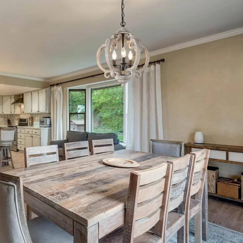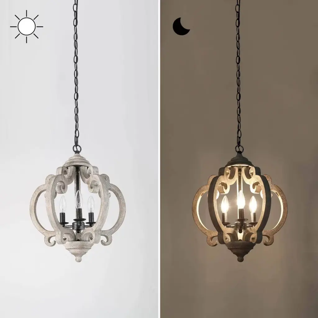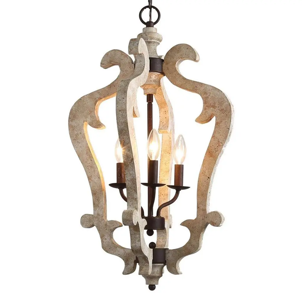 The Quaint classical collection from LNC adds industrial and rustic flair to your home. The farmhouse wood chandelier with geometric open natural wood-made cage adds a breezy touch to any space, while its hand-applied mottled black pairs perfectly with the bronze medal and wall d?or. This hand-crafted wood chandelier piece of LNC looks like flower petals blooming in spring. Featuring refined design weathered oak wood and antique forged iron artisan finish offer rustic flair in an iconic cage silhouette. Its vintage, weathered look not only alludes to simpler times, but the crisp edges and bold lines with open frames bring us back to a more modern style. This neutral versatile wood light fixture will surely provide comfort and elegance to your dining room, kitchen, or foyer. Upgrade your home with our captivating 3-light farmhouse chandelier today!