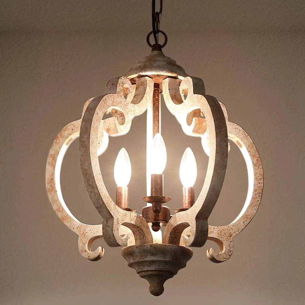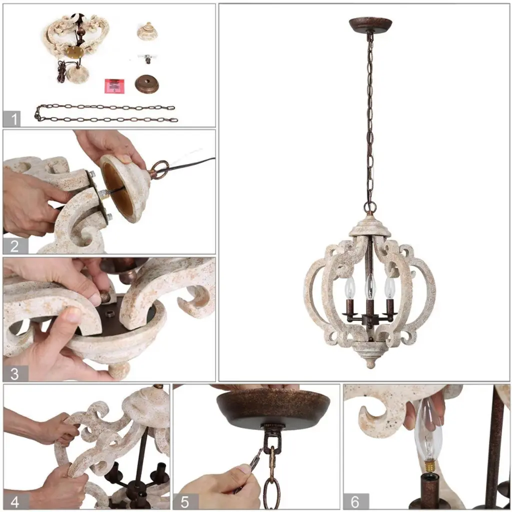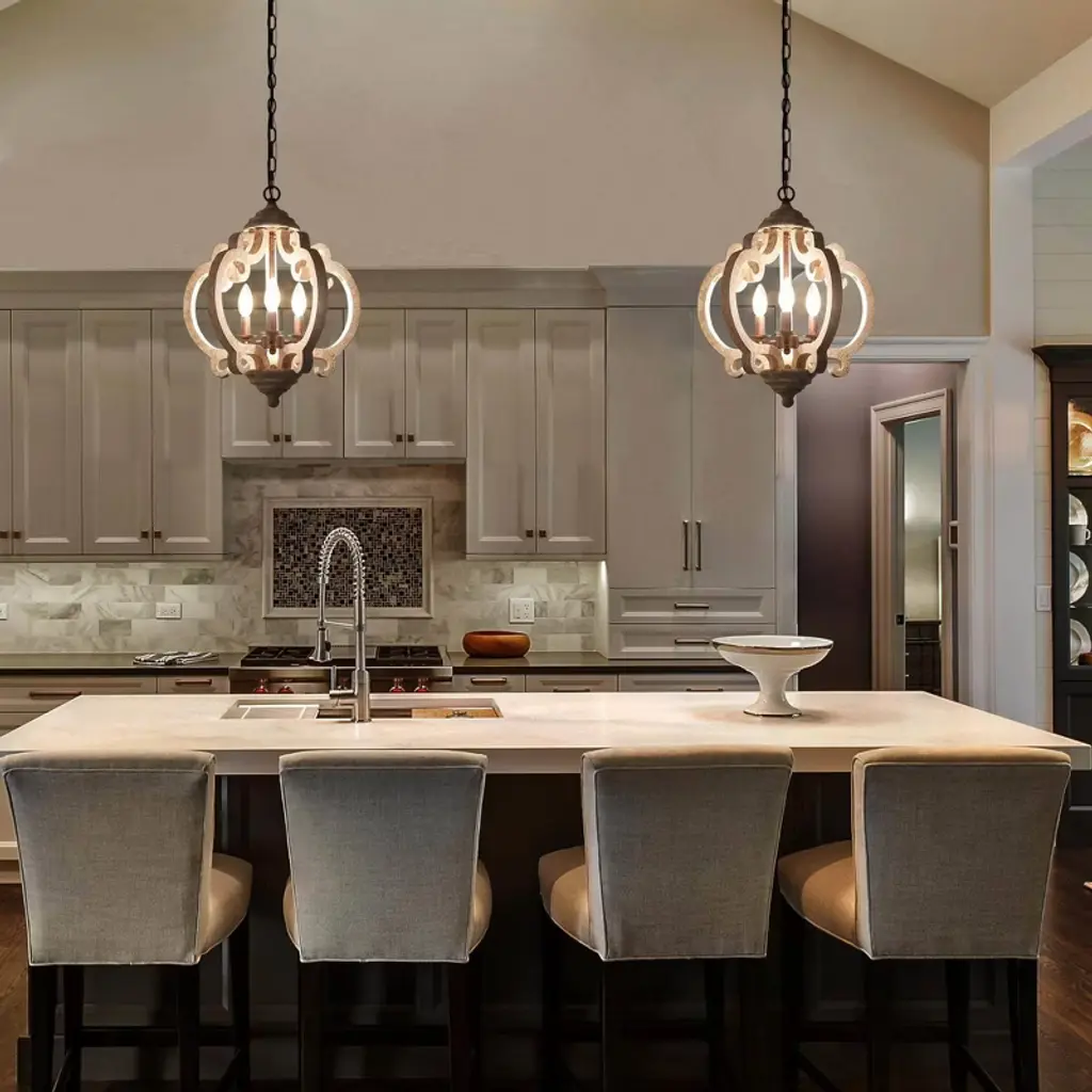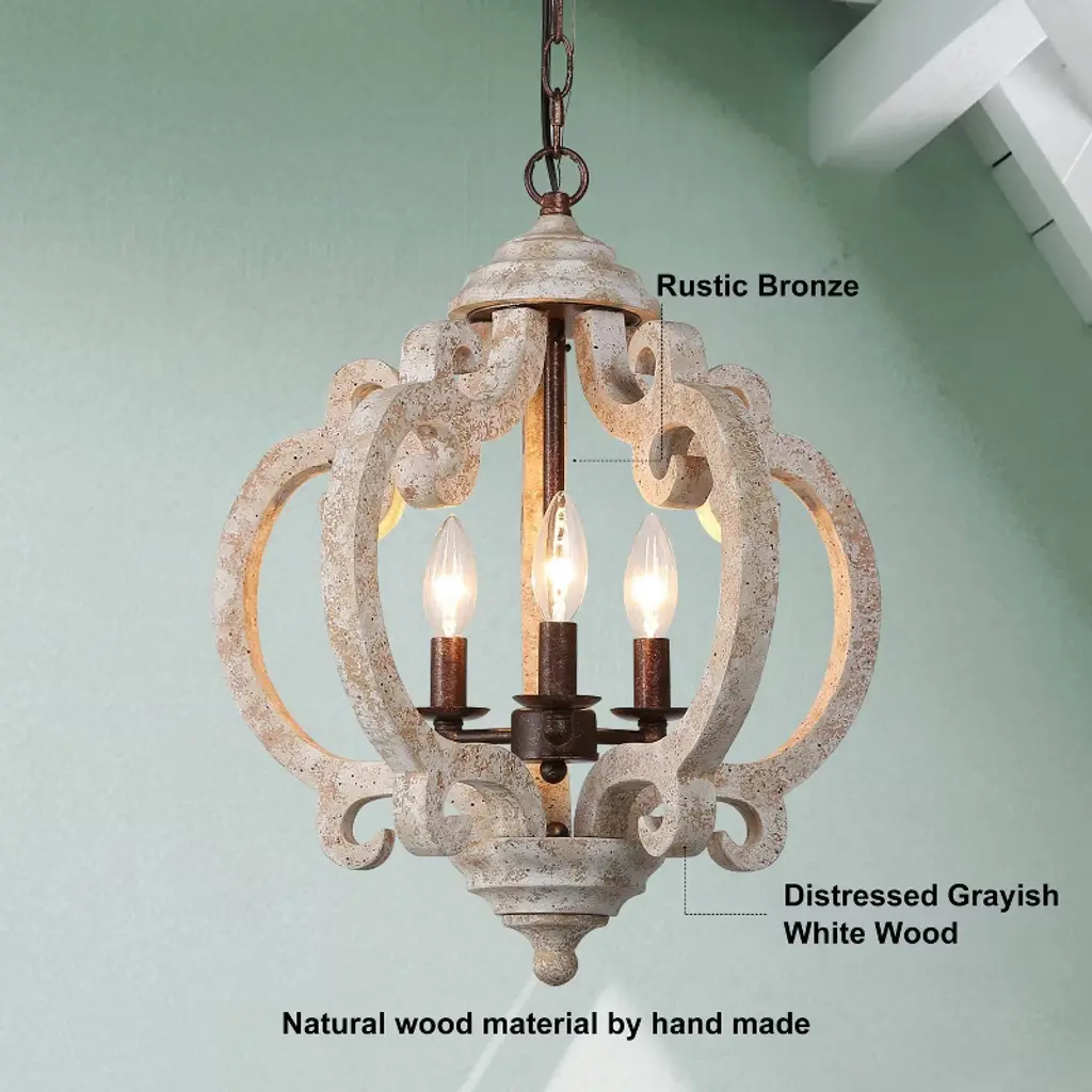 This farmhouse lantern chandelier with real wood texture adds a vintage, rustic, artistic, and charming appeal. The exquisite lantern shape is completely handmade, the smooth and graceful arc curve brings a noble and elegant feeling to this fixture. Easy to clean, also ensure years of reliable performance. This french country style pendant lighting would be a beautiful, eye-catching decor in your house, provide you with enough lights and brighten up your dining room, bedroom, living room, kitchen island, foyer, entryway, storage room.