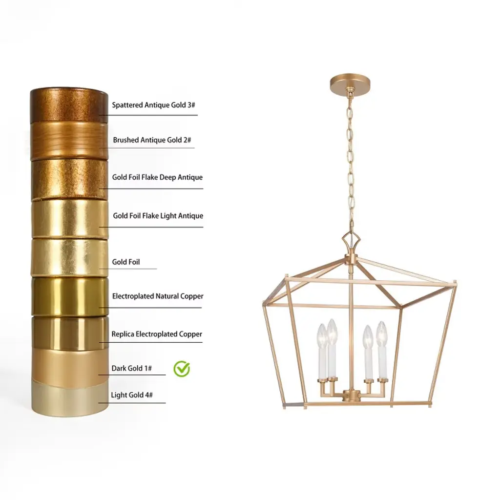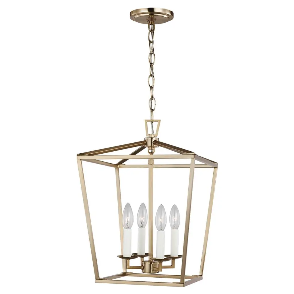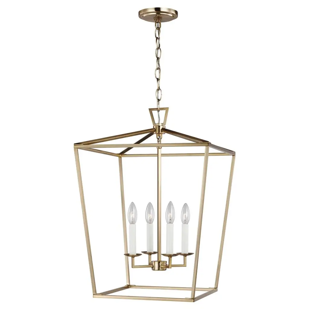 Inspired by a transitional multi-candle hanging lantern pendant light, this LNC Tabla 4-light gold geometric caged modern/contemporary candle chandelier is made of a sturdy steel frame. A high-end matte gold finish gives it a mysterious, inviting look that is special in such a minimalist design. Four white candles that look and feel like real wax provide a stylish contrast to the darker gold frame. Classic square shapes blend well with any decor from traditional to contemporary minimalist. This lantern pendant light is ideal for hanging in the living room, dining room, and kitchen island, adding style and simplicity vibe to your home.