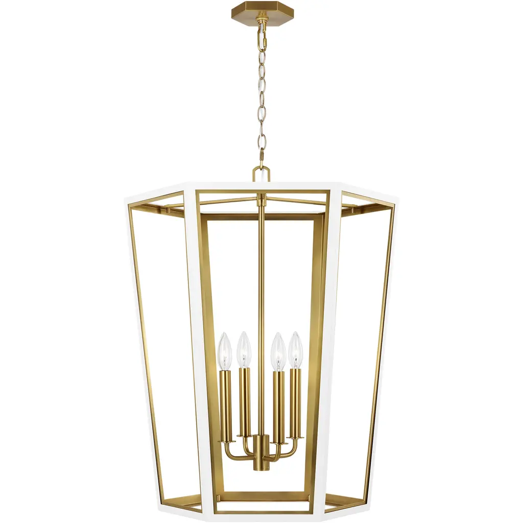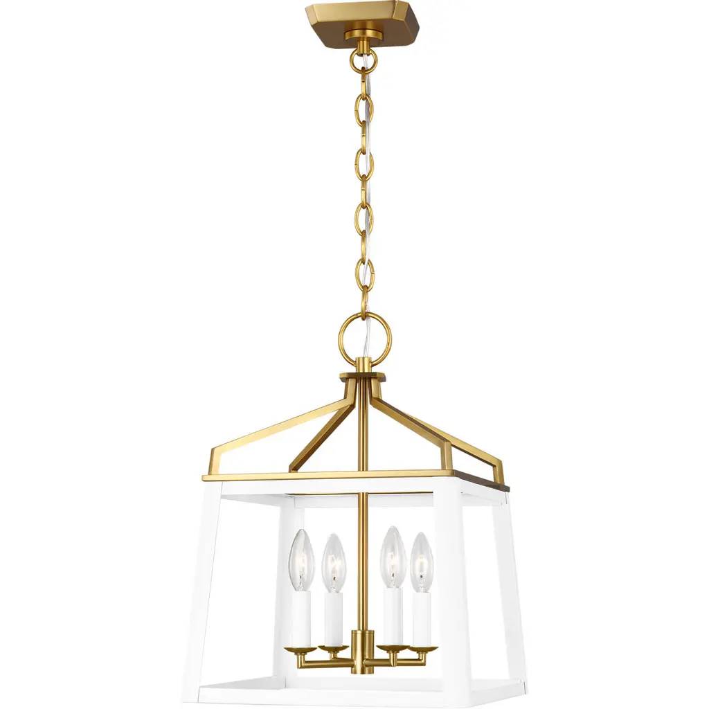 Lnc Tabla 4-lights 17.5" Modern Lantern Small Chandelier, Matte Gold And White