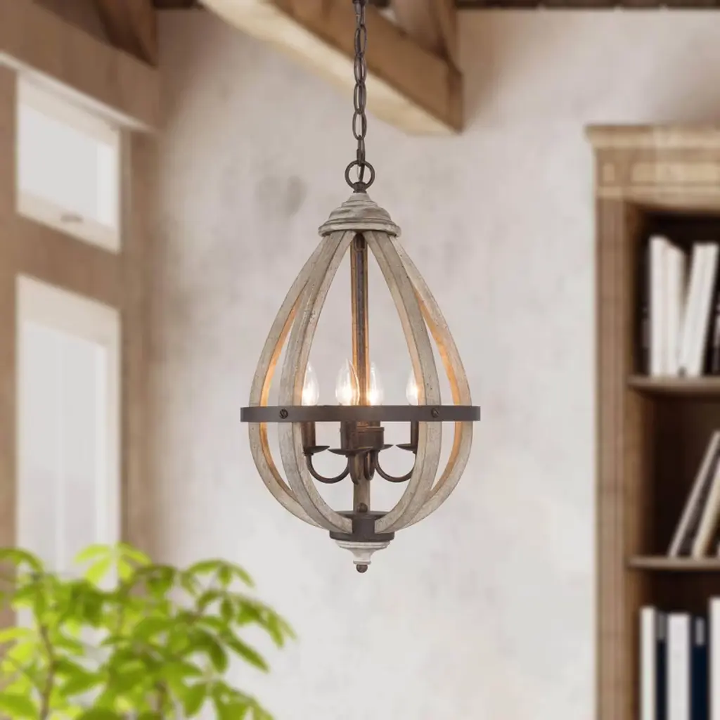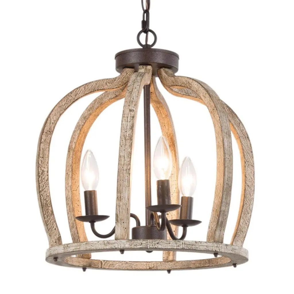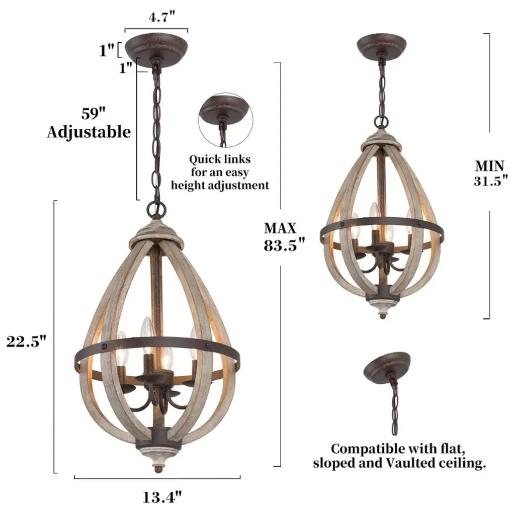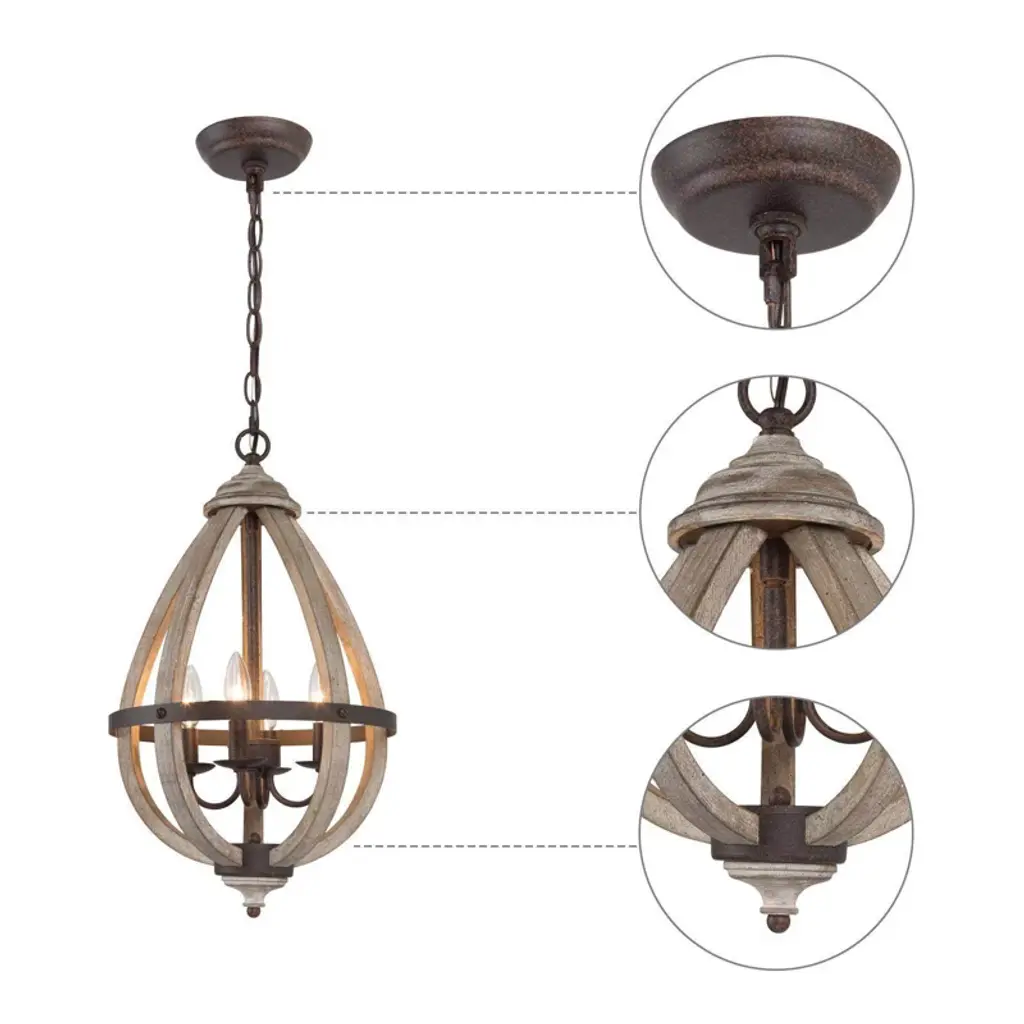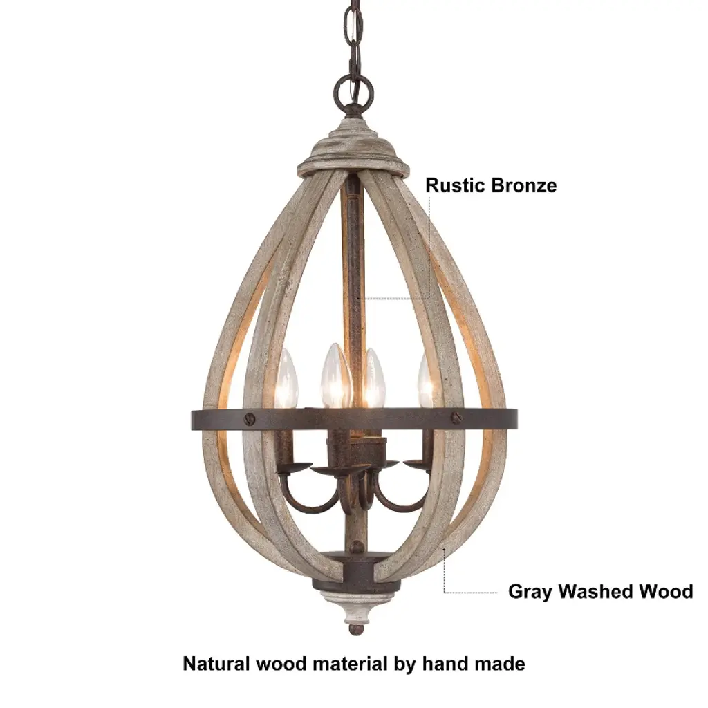 Lnc Timeless 4-lights 13.4" Farmhouse/rustic Lantern Mini Chandelier, Rustic Bronze And Weathered Gray Wood Tone
