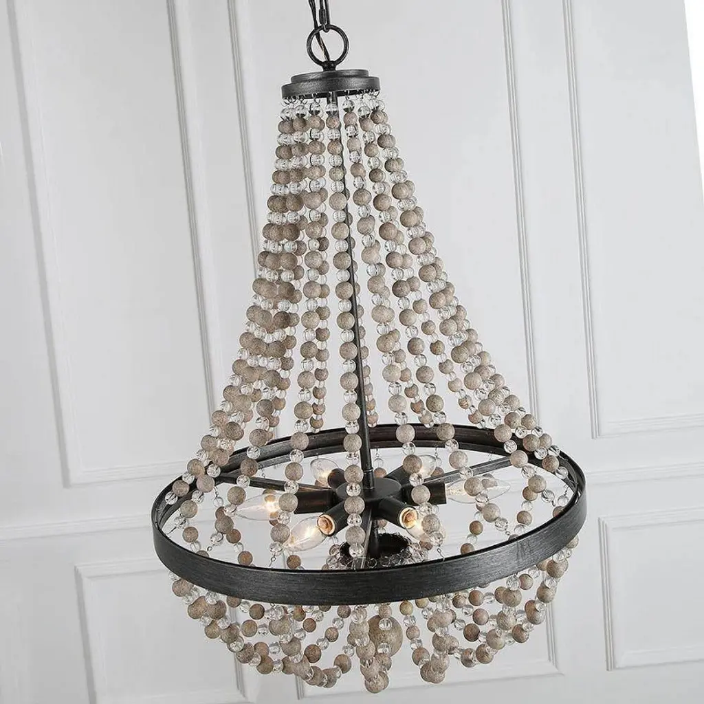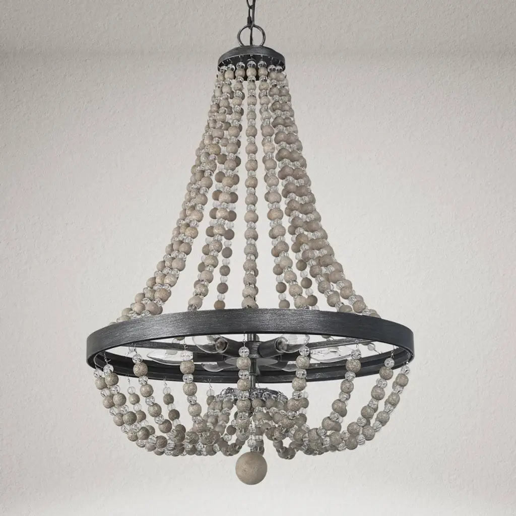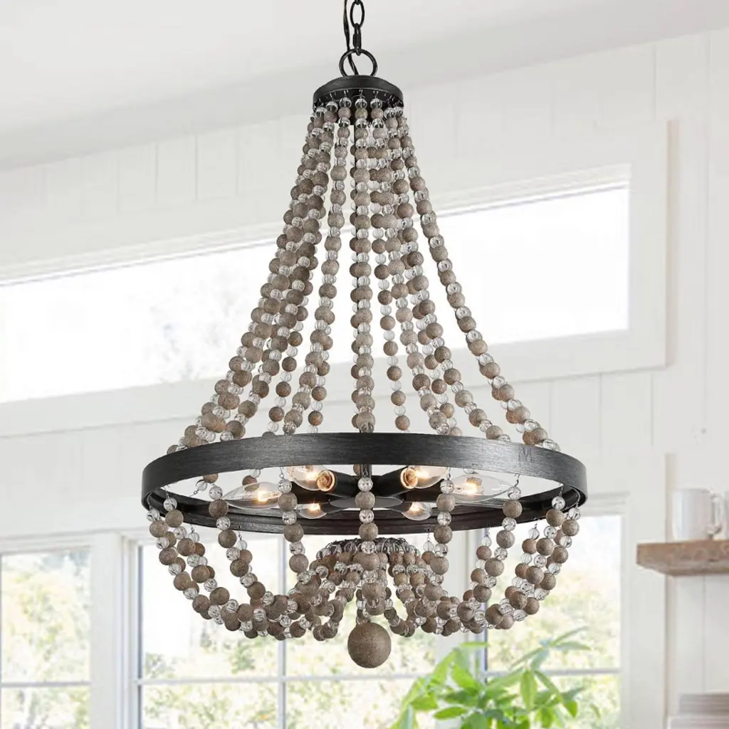 Lnc Timeless 6-lights 20.1"empire Farmhouse Candle Beaded Chandelier,brushed Black And Weathered Gray Wood Tone