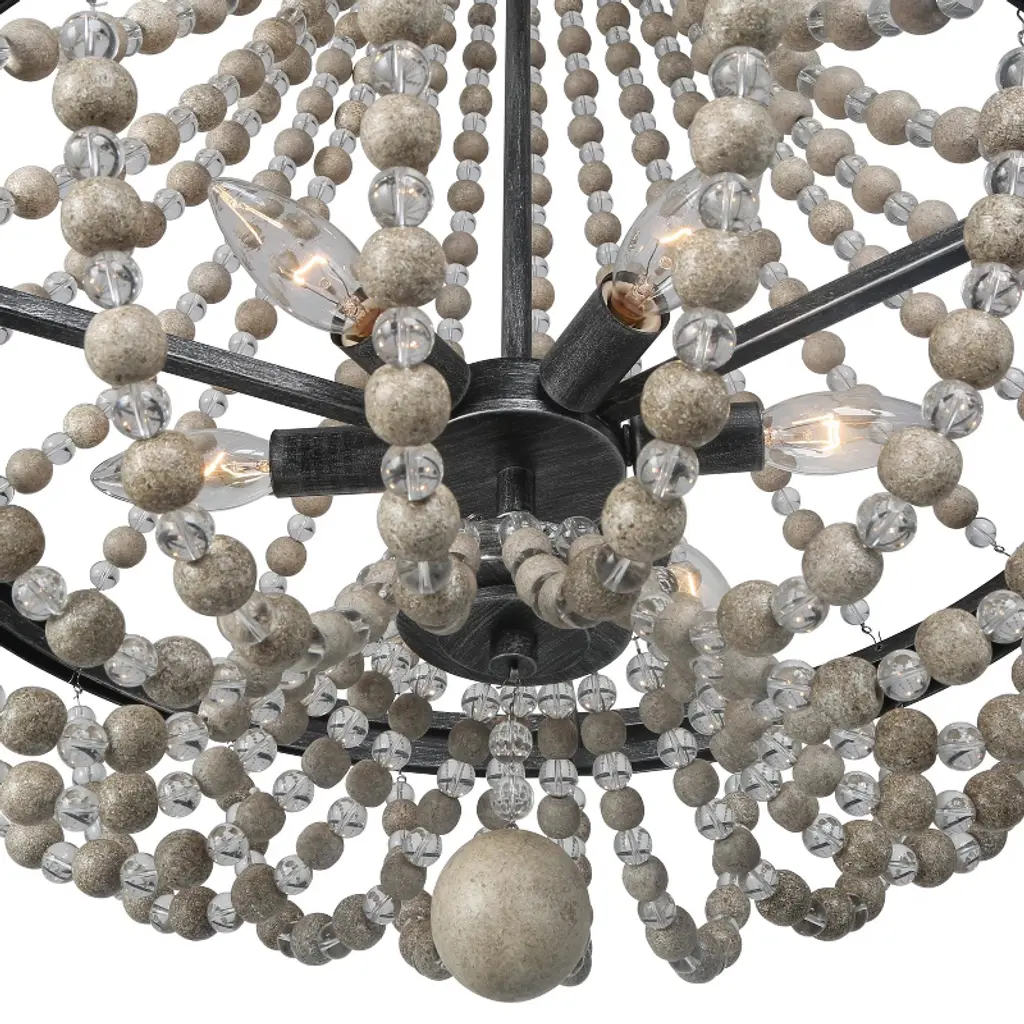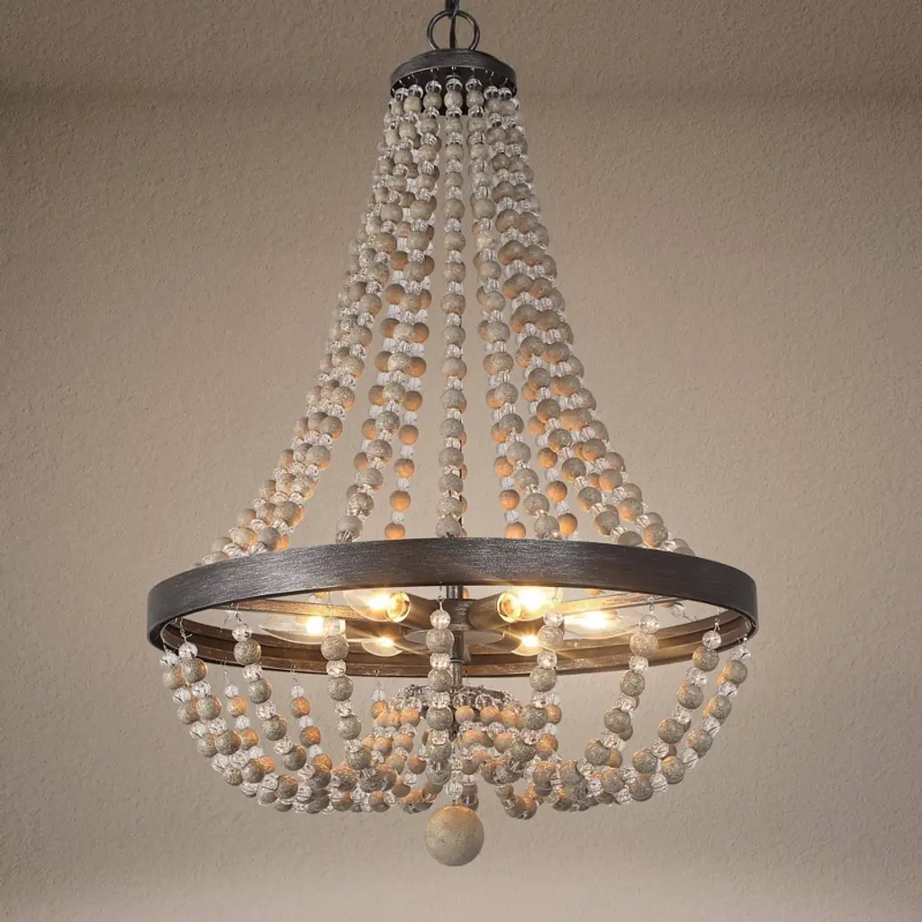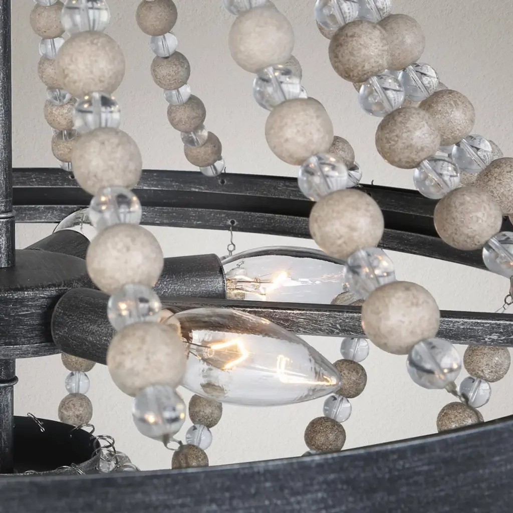 Lnc Timeless 6-lights 20.1"empire Farmhouse Candle Beaded Chandelier,brushed Black And Weathered Gray Wood Tone