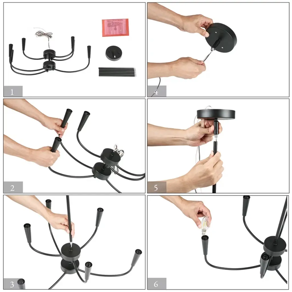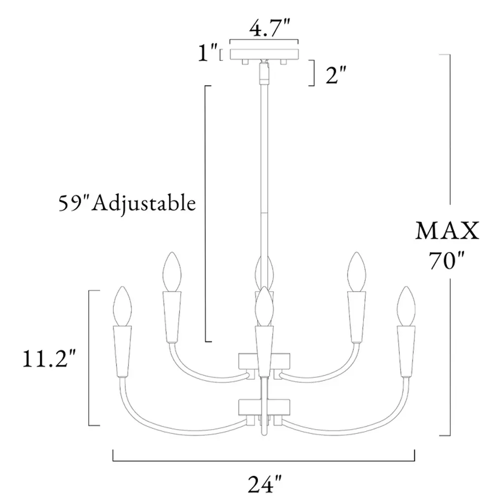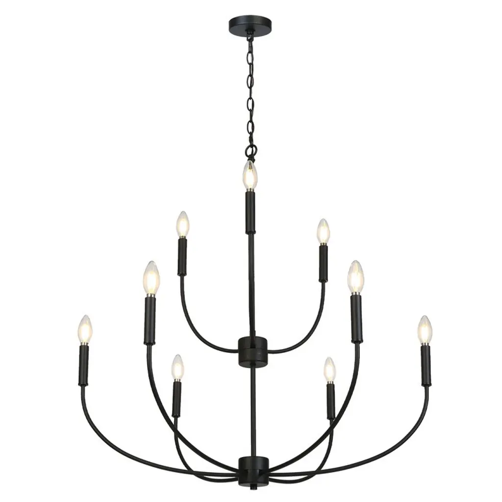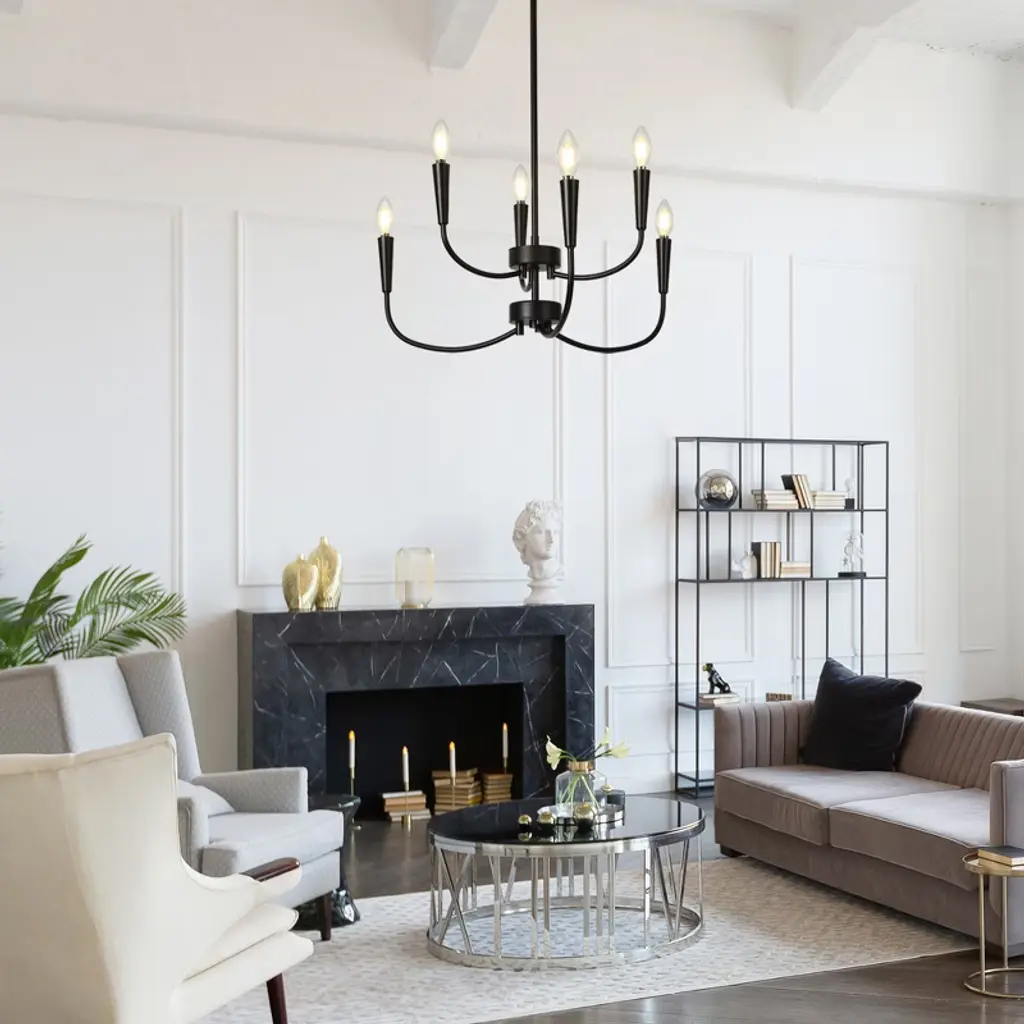 Inspired by the candelabra chandeliers that were once prevalent in the great rooms and dining halls of America's historic lodges, this chandelier collection brings a grand statement to the modern home without being overwhelming. The linear matte black chandelier embodies an unconventional modern style, showcasing six upright lights arranged on two tiers for a distinctive sprawling effect. The dimmable candle-style lights emit a warm, inviting glow, while sleek angles harmonize to form a captivating focal point. This chandelier is an ideal addition to your modern family dining room, kitchen, living room, bedroom, staircase or foyer, infusing it with contemporary elegance.
