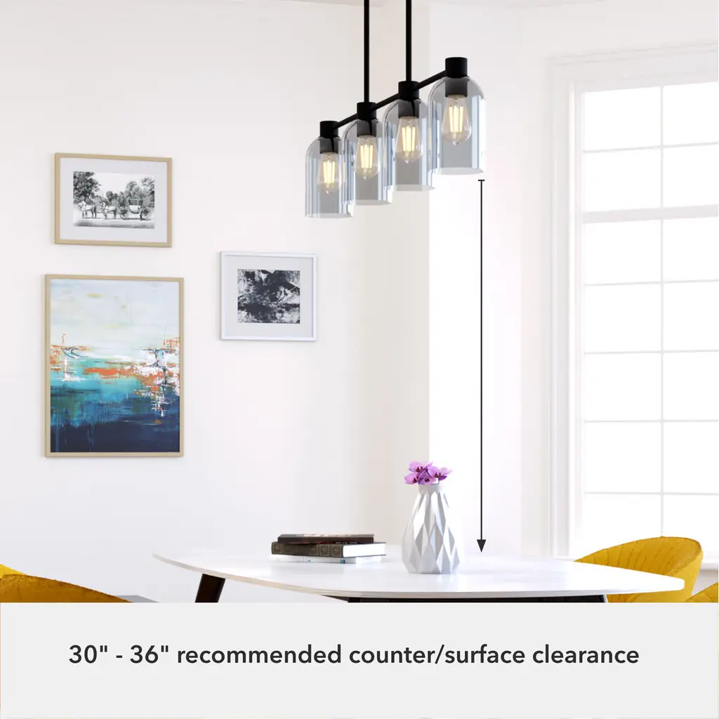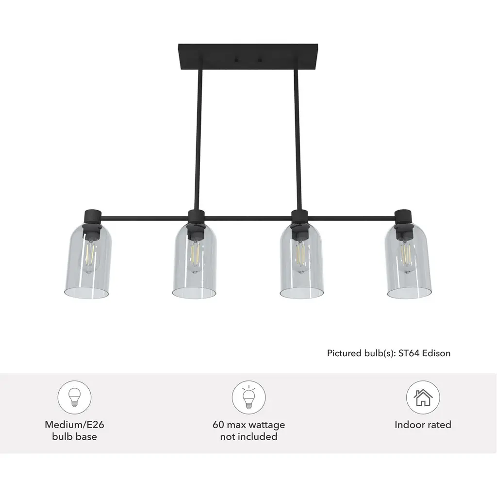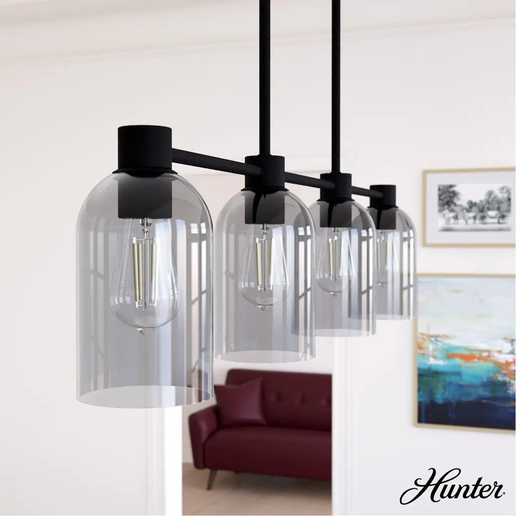 The Lochemeade linear chandelier blends simplicity with strength for a strikingly beautiful design. The modern chandelier’s strong lines and four glass dome shades embrace minimalist design. Use the Lochemeade linear chandelier with other fixtures from the collection to create a cohesive look in your home.