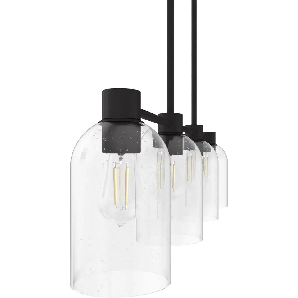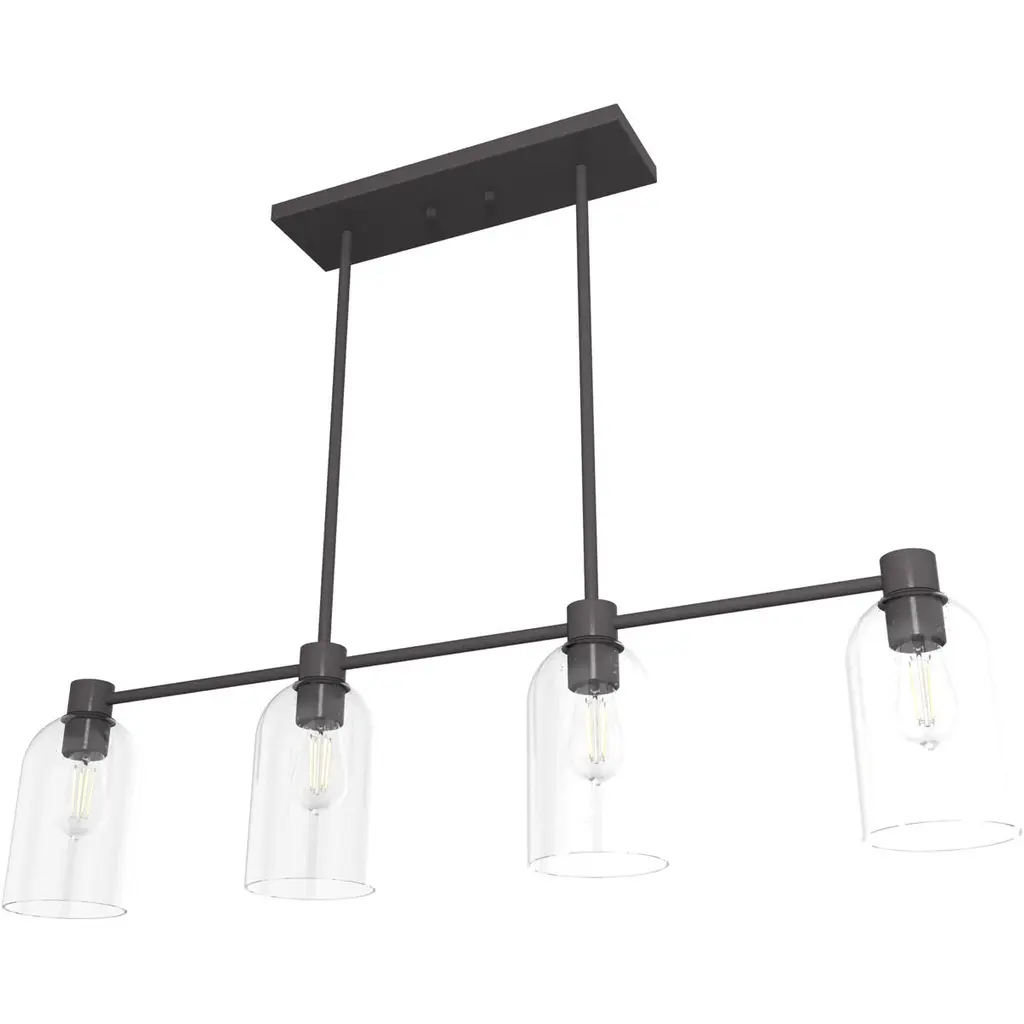 The Lochemeade linear chandelier blends simplicity with strength for a strikingly beautiful design. The modern chandelier’s strong lines and four glass dome shades embrace minimalist design. Use the Lochemeade linear chandelier with other fixtures from the collection to create a cohesive look in your home.