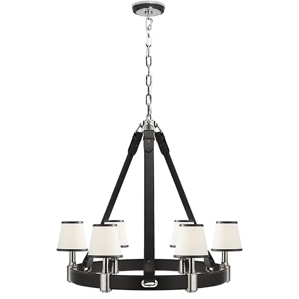 The Lockery chandelier combines traditional style with an updated twist, featuring a sleek matte black finish that complements any decor. The metal shades, with their striking gold interiors, are designed to enhance light output and create a warm, inviting glow. Ideal for adding a touch of elegance to dining rooms, living areas, or kitchens, Lockery offers a timeless aesthetic while providing both functionality and style. Its classic design and refined details make it a versatile choice for a variety of interior settings.