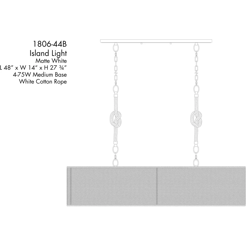 Lodelle 4 Light 48 Inch Matte White Island Chandelier Ceiling Light