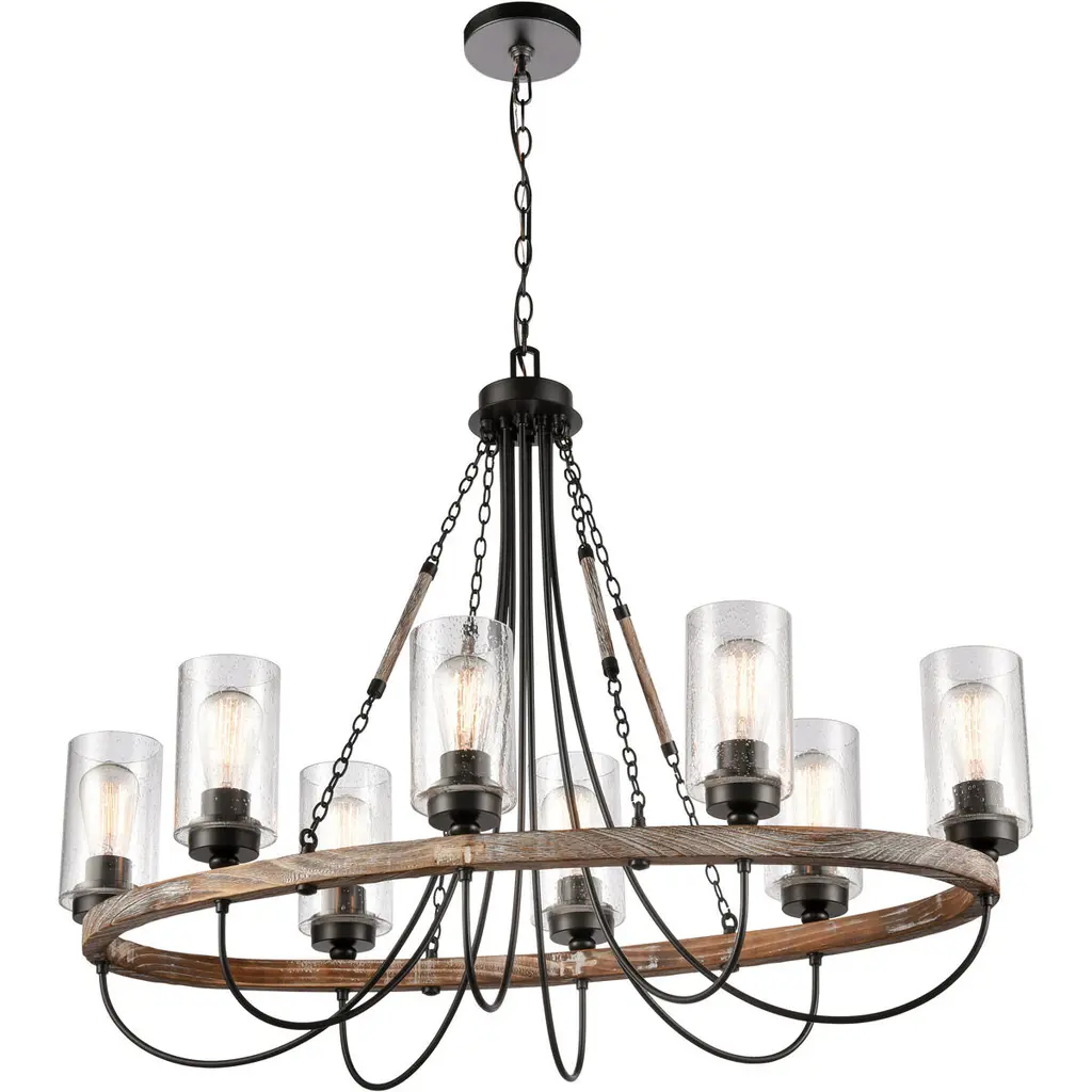 Lodge 8 Light 38 Inch Weathered Oak/bronze Chandelier Ceiling Light