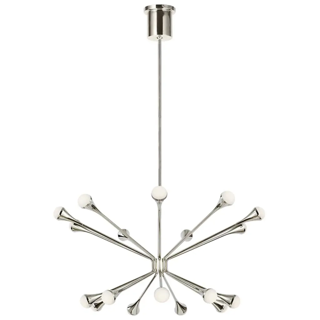 Superstar craft and style. The Lody Chandelier by Visual Comfort Modern, formerly known as Tech Lighting, is sure to become the star of your ceiling lighting setup, with a distinctively whimsical retro-futurist design that’s sure to impress. Rings of arms extend upward and downward to hold the chandelier’s many LED bulbs, creating a multidirectional lighting pattern that’s both pointed and ambient. It drew the inspiration for its look from Mid-Century design and gave it a modern twist to make a strong statement in your living room, dining room, or foyer.