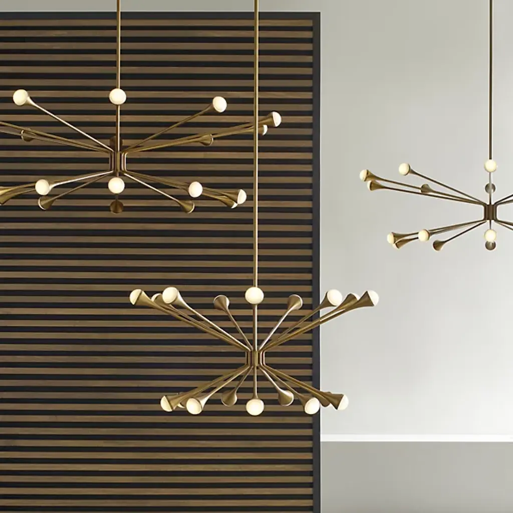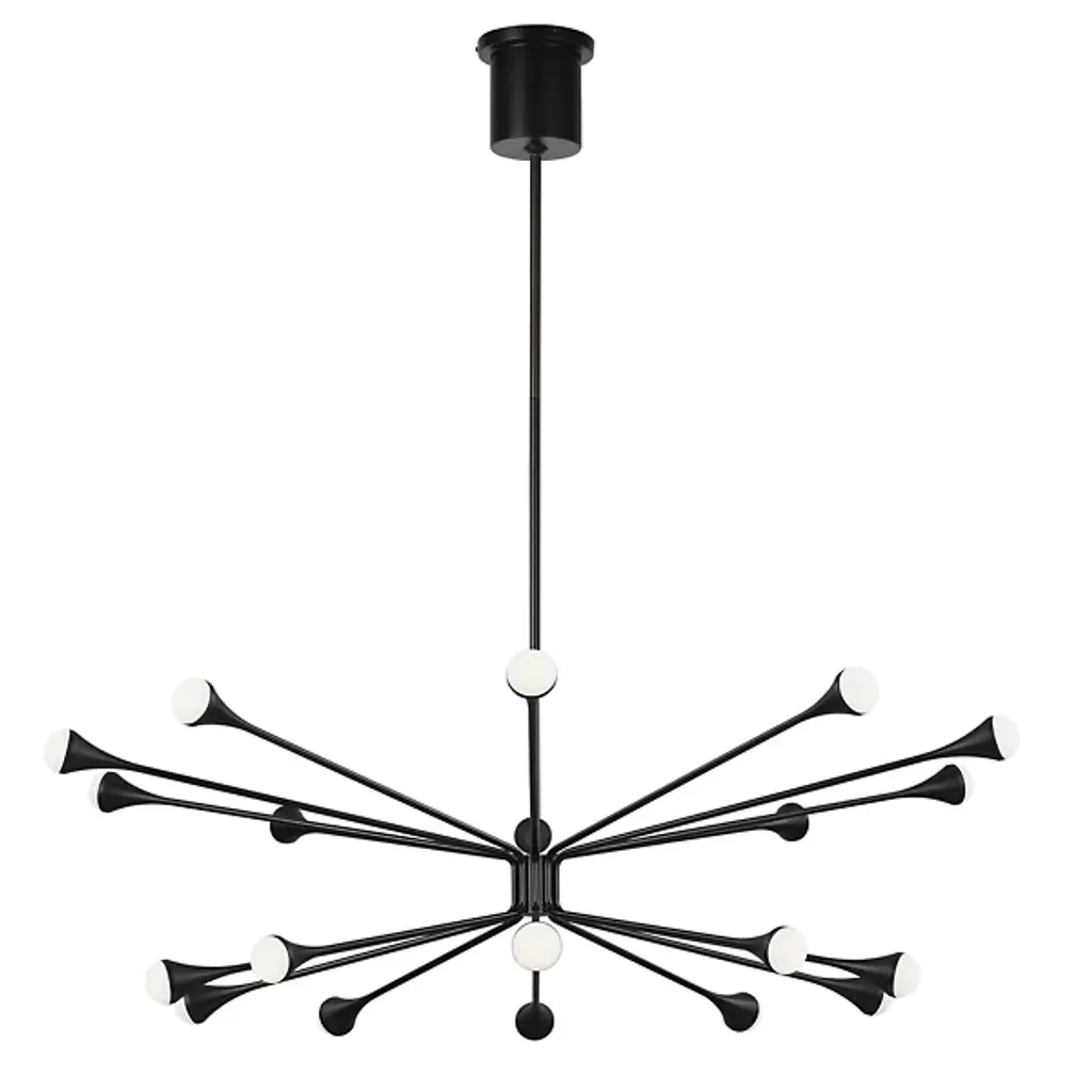 Superstar craft and style. The Lody Chandelier by Visual Comfort Modern, formerly known as Tech Lighting, is sure to become the star of your ceiling lighting setup, with a distinctively whimsical retro-futurist design that’s sure to impress. Rings of arms extend upward and downward to hold the chandelier’s many LED bulbs, creating a multidirectional lighting pattern that’s both pointed and ambient. It drew the inspiration for its look from Mid-Century design and gave it a modern twist to make a strong statement in your living room, dining room, or foyer.