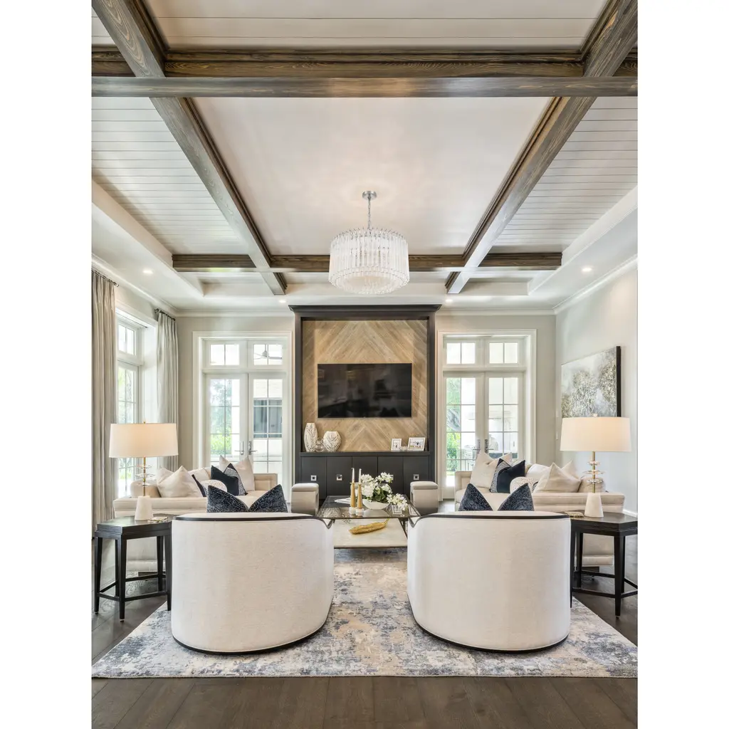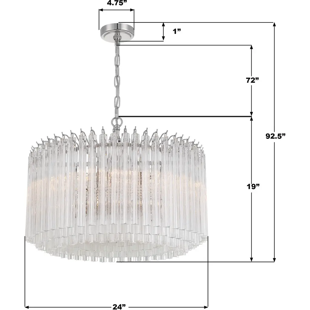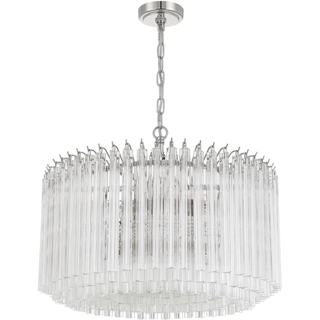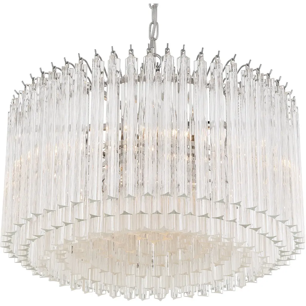 The Lofton Collection showcases mid-century sophistication with its stepped, tiered design and distinctive Triedri glass rods. Created using a technique that involves making triangular cuts on the glass, the Triedri method results in a faceted, crystal-like appearance that enhances sparkle and depth. The glass gracefully cascades downward and inward, framed in polished nickel or aged brass. This dynamic design ensures that the Lofton Collection remains a luxurious and visually striking centerpiece, with its facets reflecting light in captivating ways from any angle.