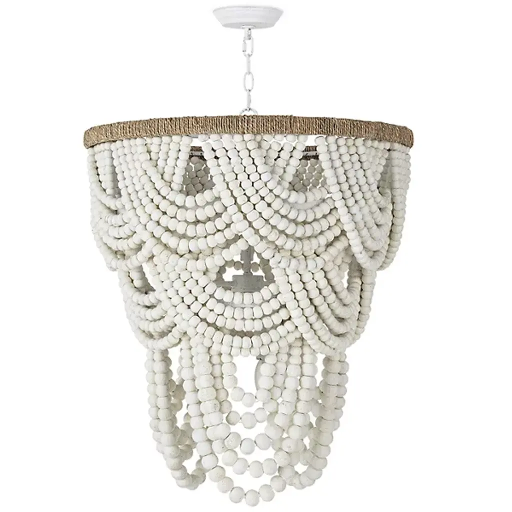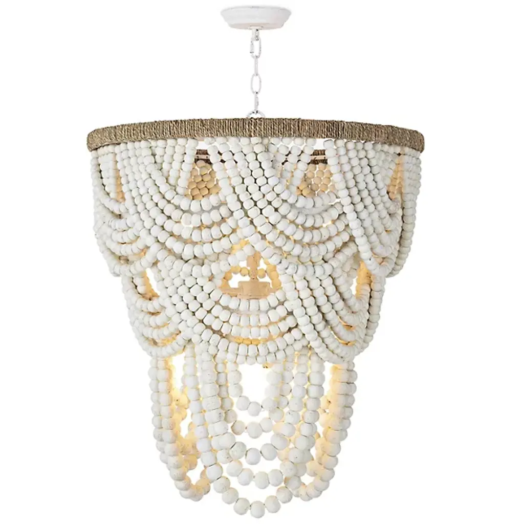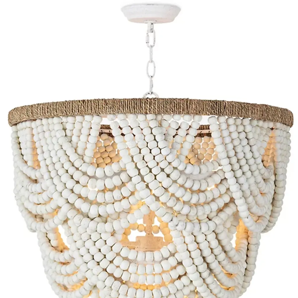 The Lorelei Chandelier from Regina Andrew is a captivating blend of coastal charm and artisanal modern design. Crafted with precision from sturdy steel and natural jute, this chandelier combines durability with organic elegance. The chandelier features 2 tiers adorned with soft-distressed birch wood beads. Equipped with dimmable functionality, you can adjust the brightness level of the LEDs using a separately sold ELV dimmer. This fixture easily adapts to sloped ceilings for your convenience.