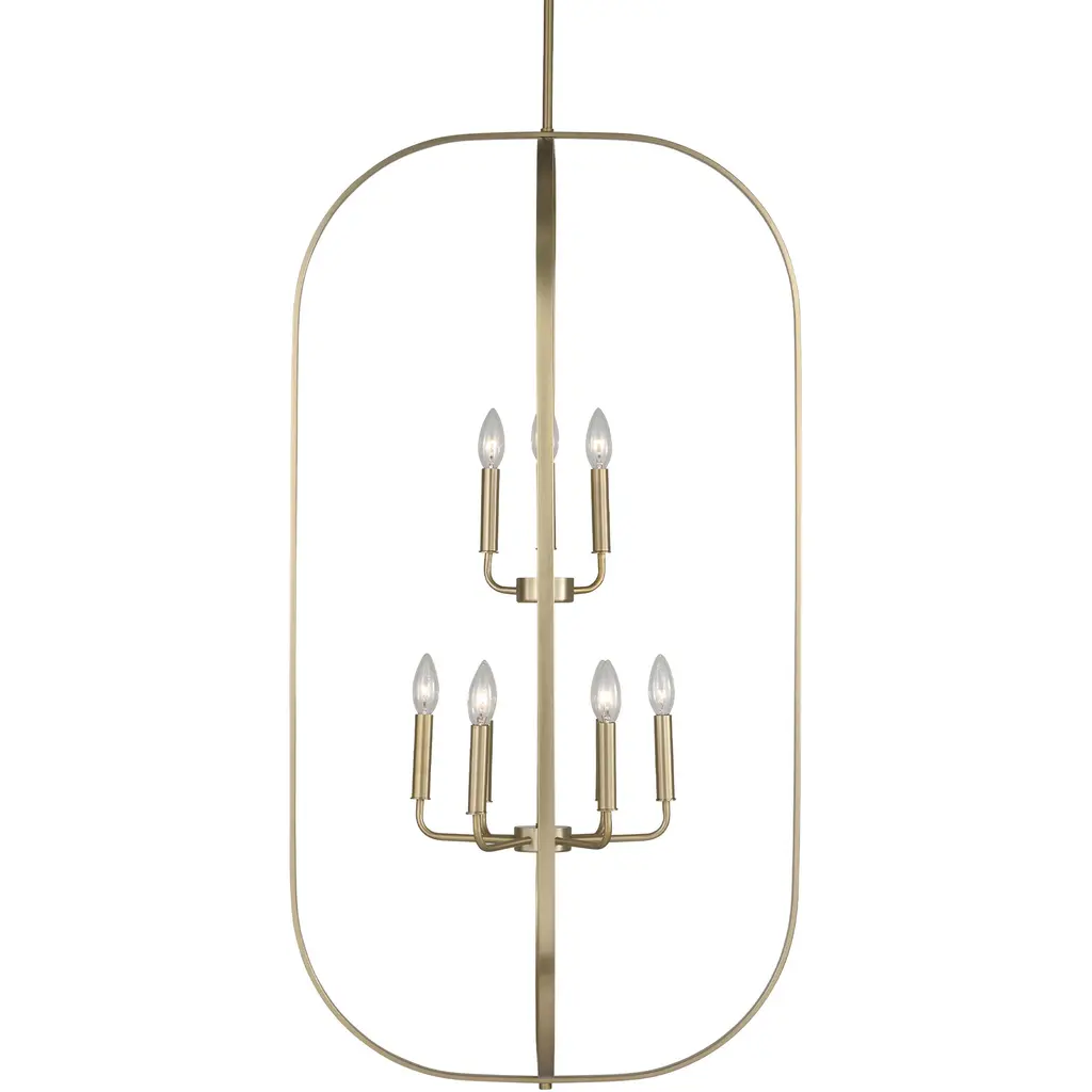 Inset candles framed in contemporary rounded edge forms bring abundance and scale to the Loretto lanterns. Available in 3-, 4-, 6- and 9-light 2-tiered options, Loretto can be placed in open foyers and airy dining spaces across a range of interior design genres. Midnight black, satin brass, and brushed steel finishes are versatile and functional.