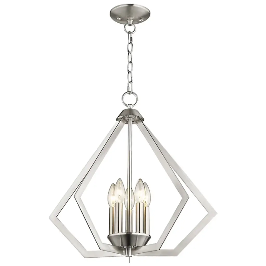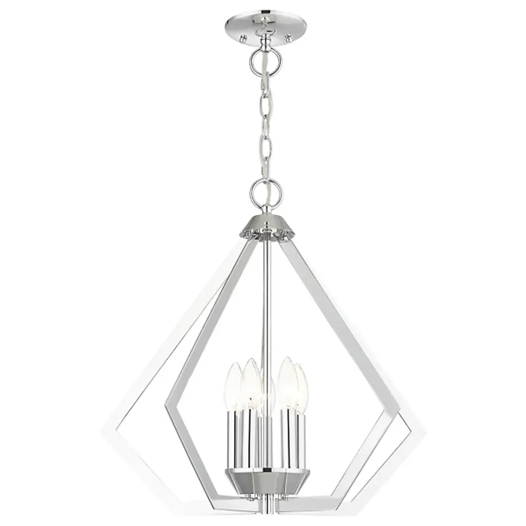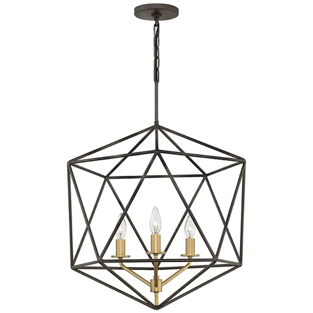 The Louie Chandelier by Alder & Ore was influenced by modern industrial styles and brings spaces a striking, sleek design with a bright touch. A set of visible candelabras are housed within an openly formed, prism-shaped frame that is suspended by a linked chain. Dressed up with a beautiful finish, this geometric silhouette allows plenty of light to escape in all directions while giving this chandelier a defined silhouette that captures the eye.