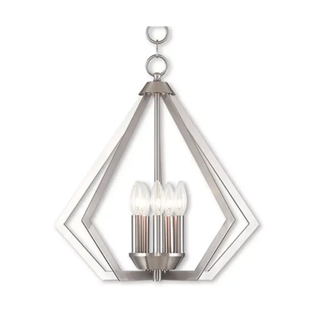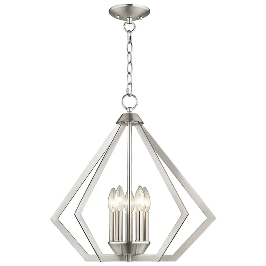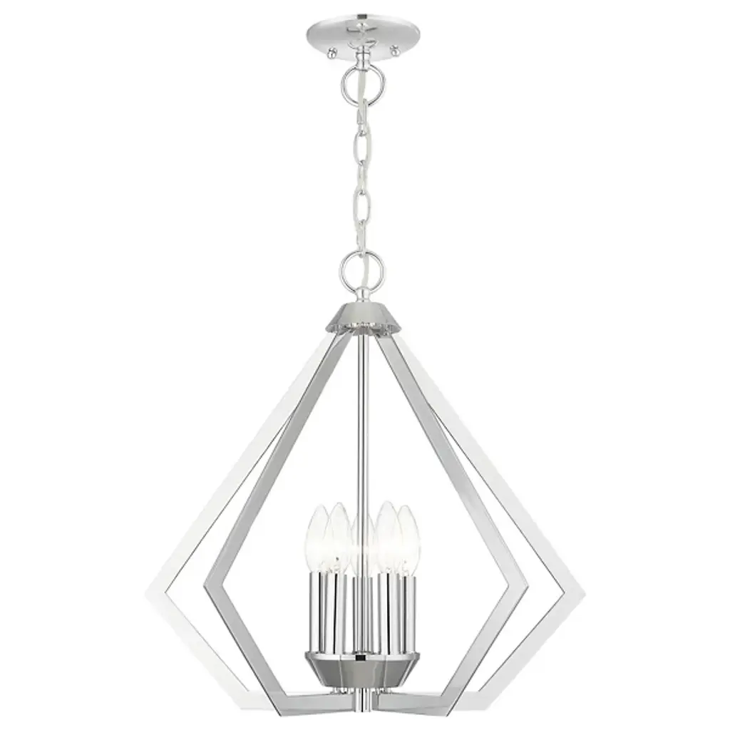 The Louie Chandelier by Alder & Ore was influenced by modern industrial styles and brings spaces a striking, sleek design with a bright touch. A set of visible candelabras are housed within an openly formed, prism-shaped frame that is suspended by a linked chain. Dressed up with a beautiful finish, this geometric silhouette allows plenty of light to escape in all directions while giving this chandelier a defined silhouette that captures the eye.