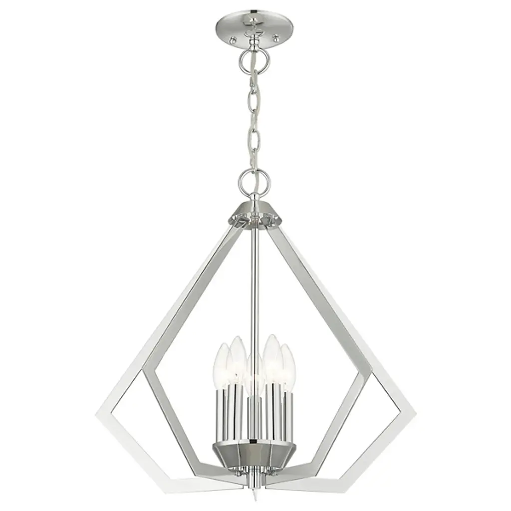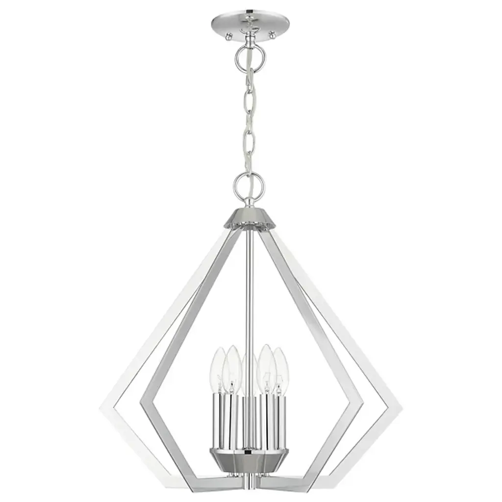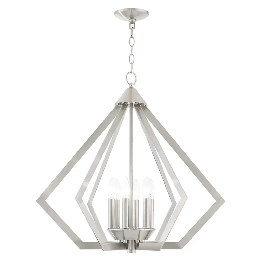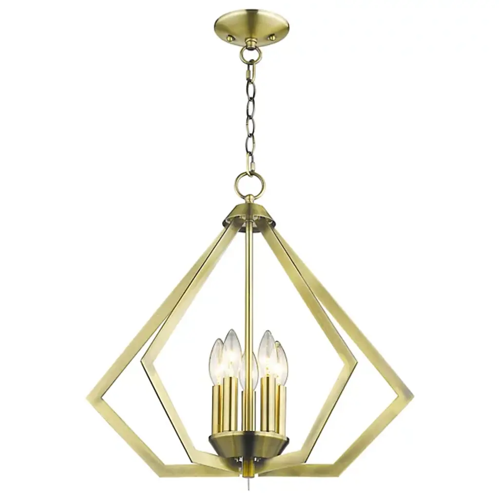 The Louie Chandelier by Alder & Ore was influenced by modern industrial styles and brings spaces a striking, sleek design with a bright touch. A set of visible candelabras are housed within an openly formed, prism-shaped frame that is suspended by a linked chain. Dressed up with a beautiful finish, this geometric silhouette allows plenty of light to escape in all directions while giving this chandelier a defined silhouette that captures the eye.