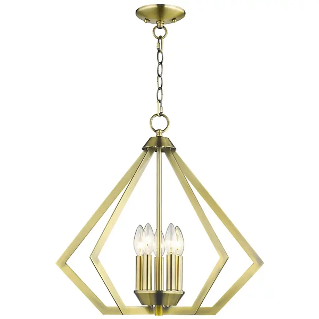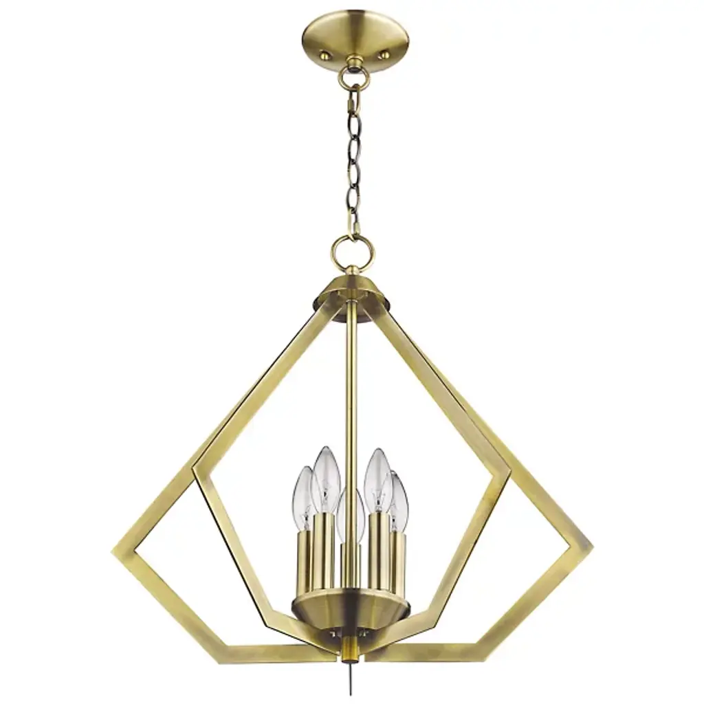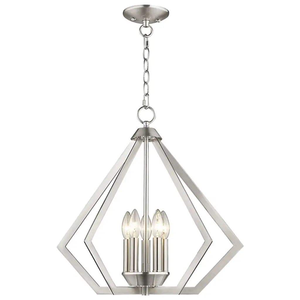 The Louie Chandelier by Alder & Ore was influenced by modern industrial styles and brings spaces a striking, sleek design with a bright touch. A set of visible candelabras are housed within an openly formed, prism-shaped frame that is suspended by a linked chain. Dressed up with a beautiful finish, this geometric silhouette allows plenty of light to escape in all directions while giving this chandelier a defined silhouette that captures the eye.