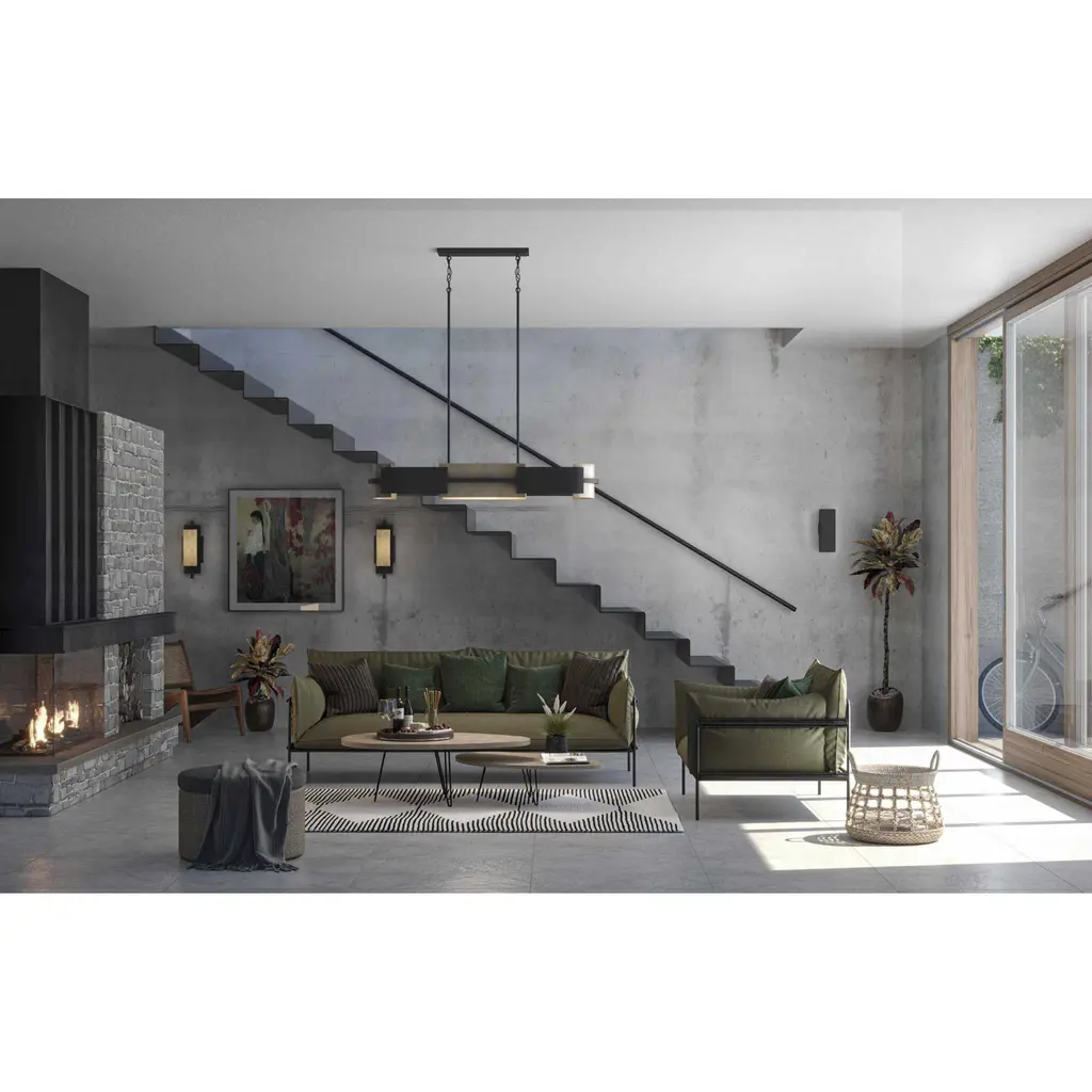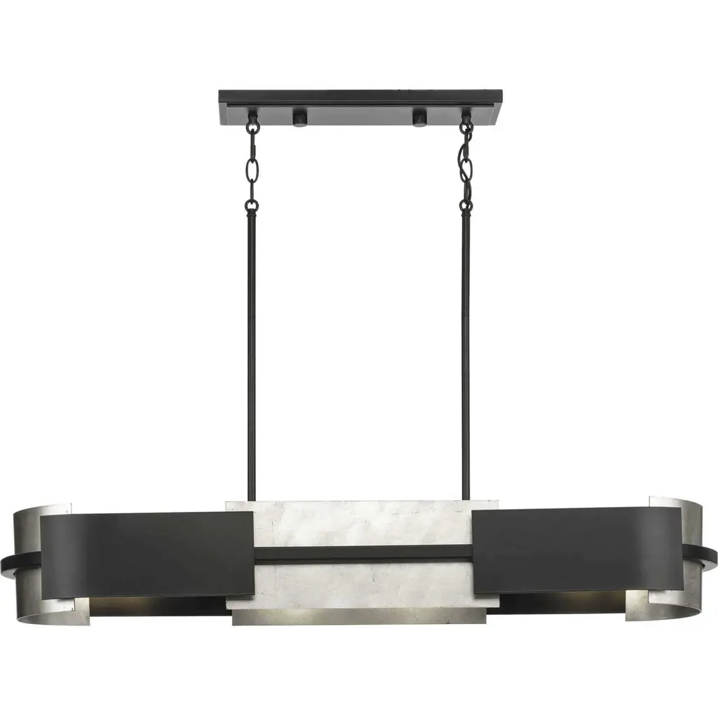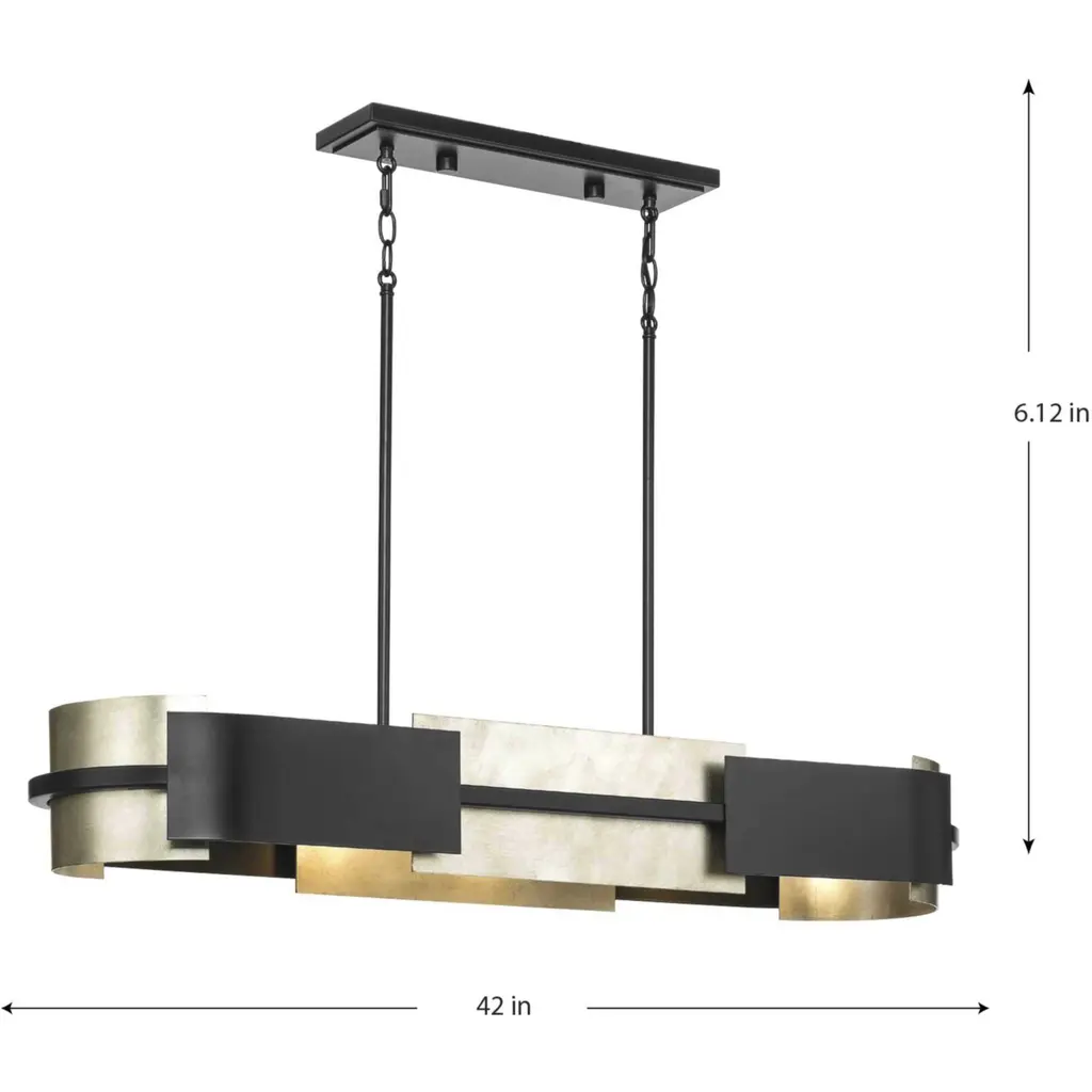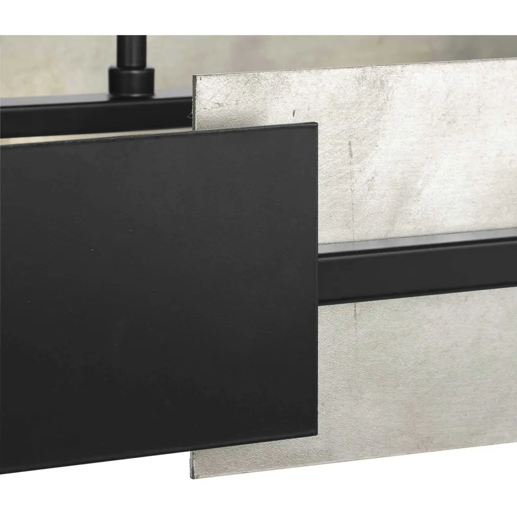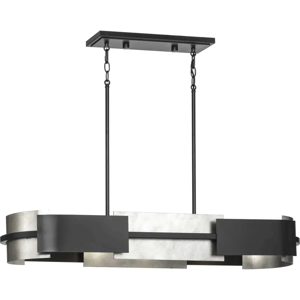 Raise the bar on contemporary design with Lowery. Layered rectangular shields coated in a matte black iron finish are artistically combined with distressed antique silver leaf panels against a black frame. Light sources glowing from inside the structure cast a shimmering reflective illumination that highlights the beautiful contrast between light and dark. Lowery delivers a stately ambient light to dining rooms, bedrooms and living rooms in luxe industrial, contemporary and rustic modern settings. This fixture is part of the Progress Lighting Design Series, a lighting collection offering fashionable styles and affordable luxury lighting for the home.