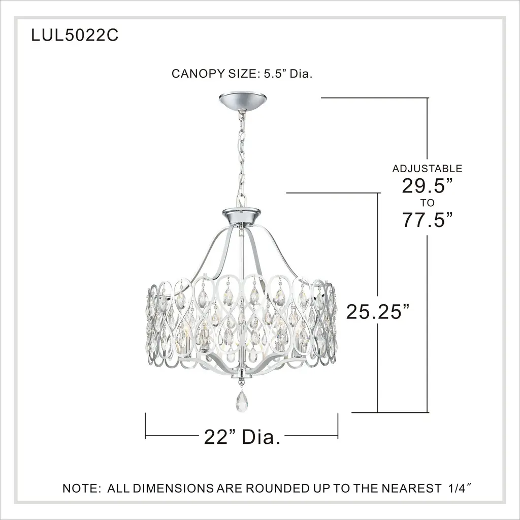 Lulu 5 Light 22 Inch Polished Chrome Chandelier Ceiling Light