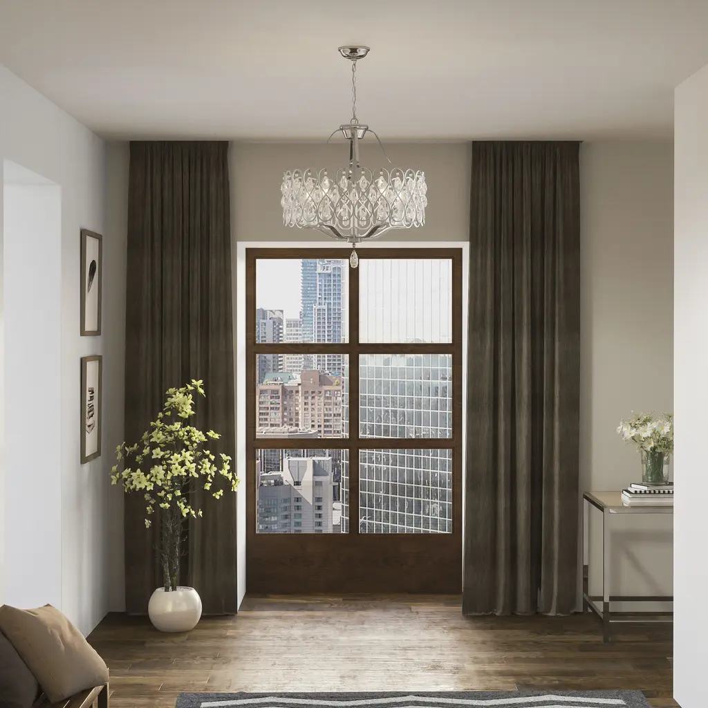 Go glam with Lulu, a glittering, semi-flush style resonating opulence and elegance with a polished chrome finish. Lulu features an ornate outer cage drenched in faceted glass prisms. Each one refracts light from the candles inside, casting a luminous glow.