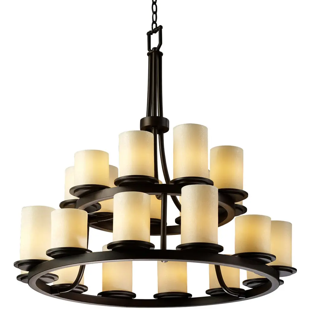 Lumenaria 21 Light 60 Inch Matte Black Chandelier Ceiling Light In Cylinder With Broken Rim, Incandescent