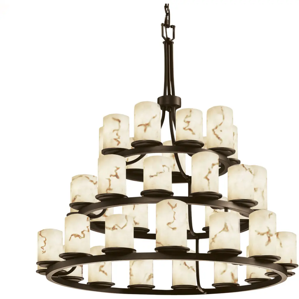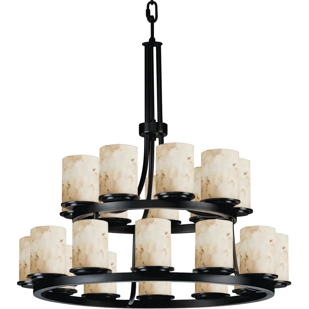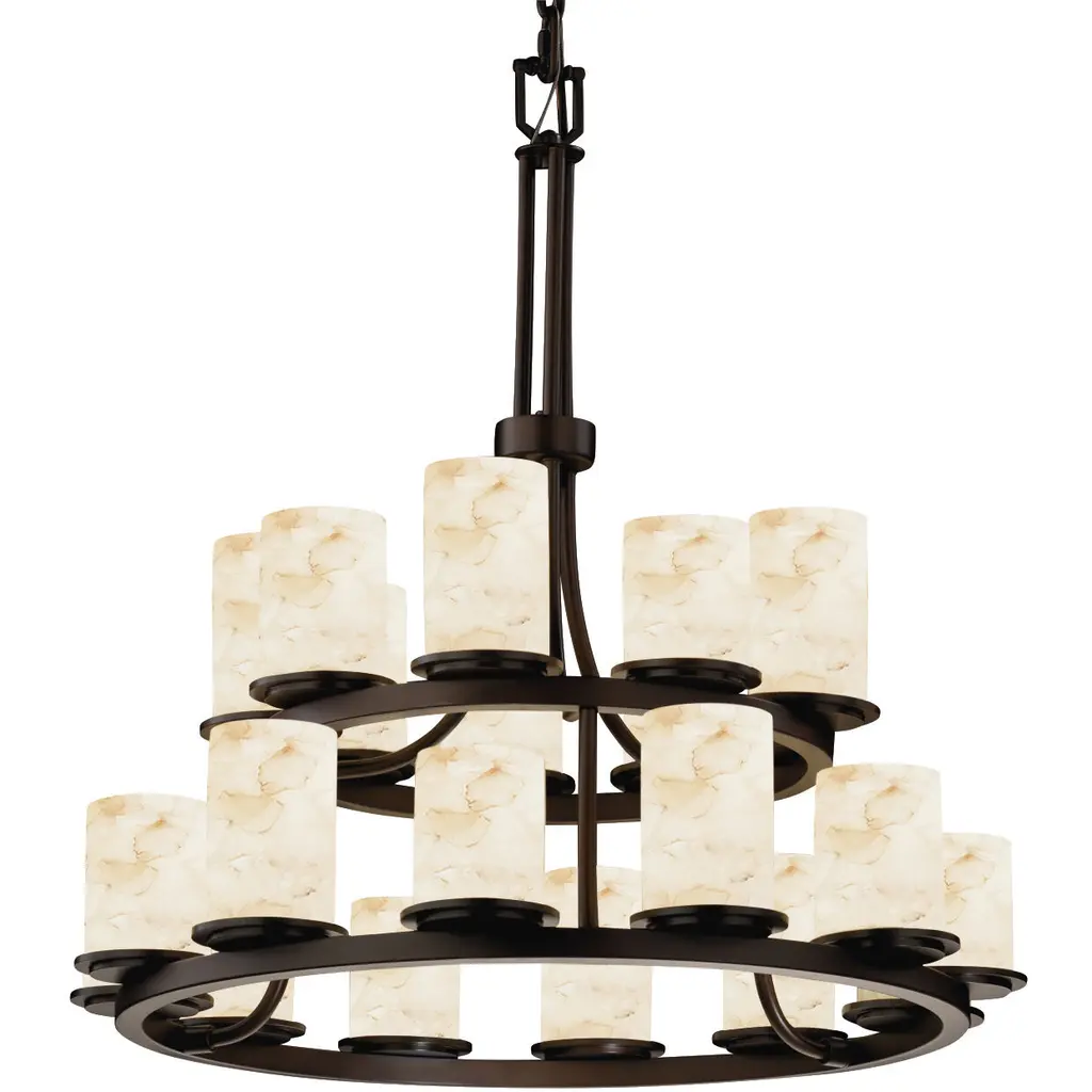 Lumenaria 21 Light Dark Bronze Chandelier Ceiling Light In Cylinder With Flat Rim, Incandescent