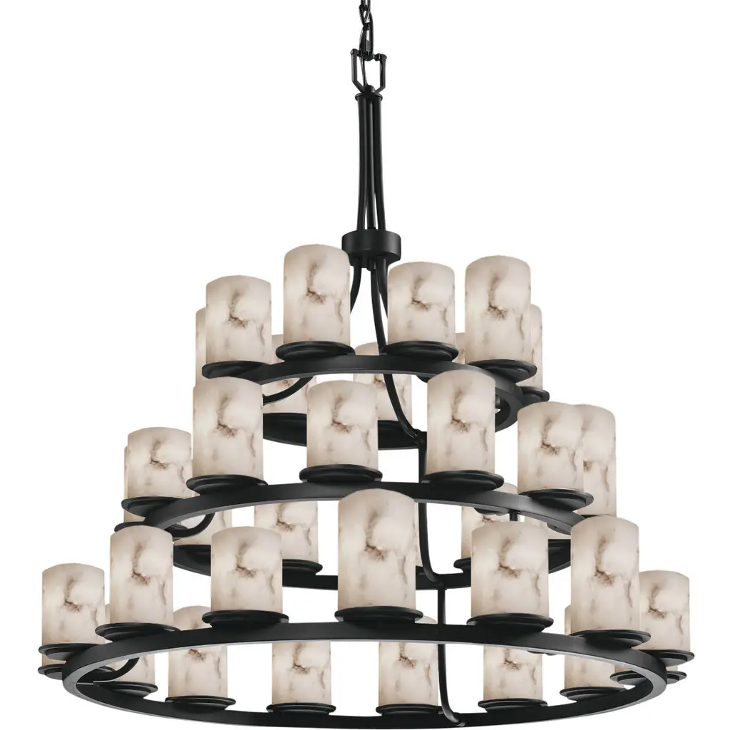 Lumenaria 36 Light Dark Bronze Chandelier Ceiling Light In Cylinder With Flat Rim, Incandescent