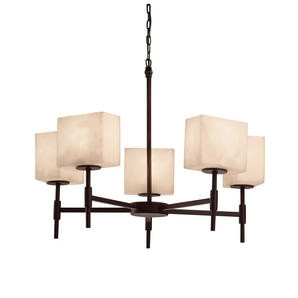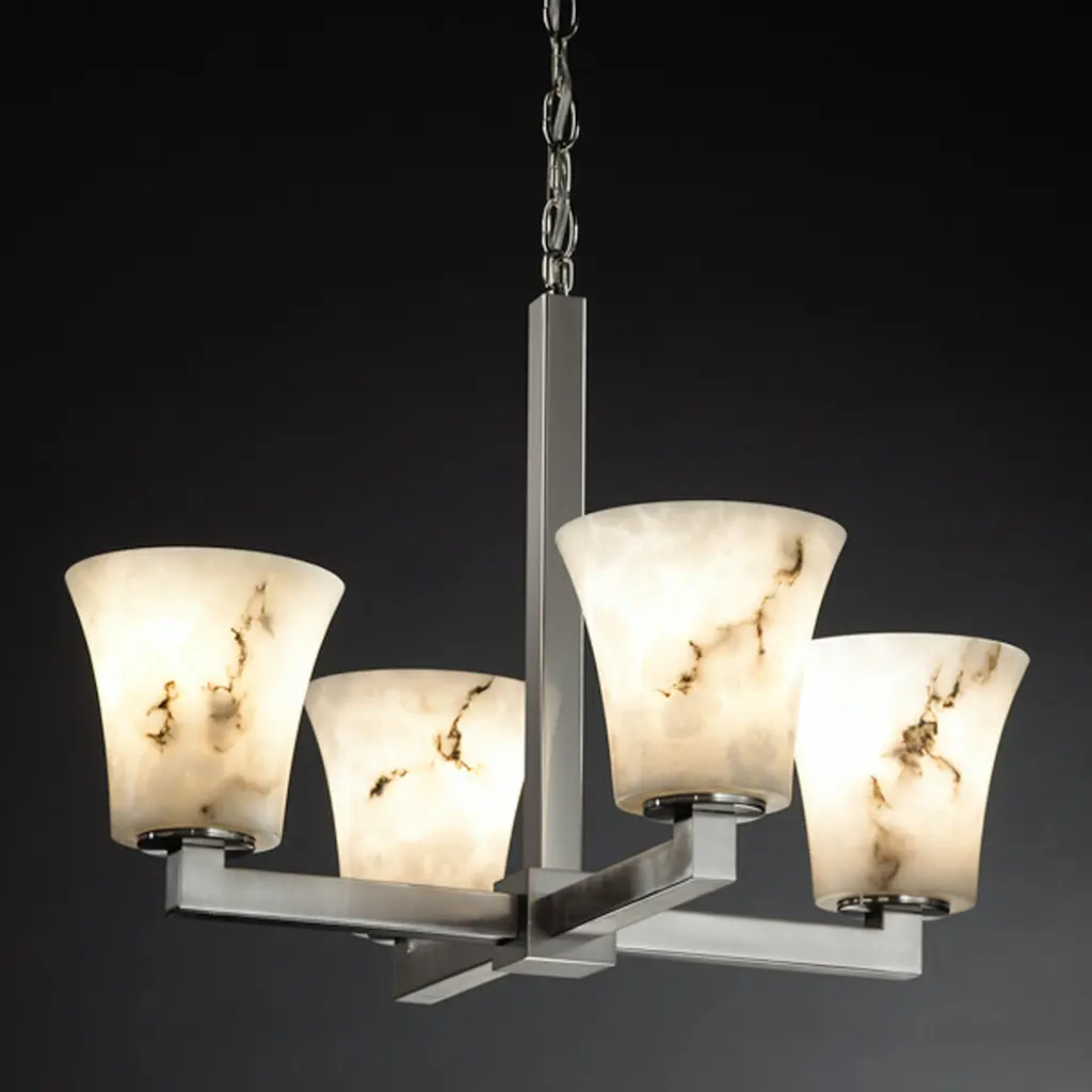 LumenAria™ - Metropolis 4-Light LED Chandelier - Cylinder w/ Flat Rim Shade - Faux Alabaster - Brushed Nickel - Dedicated LED