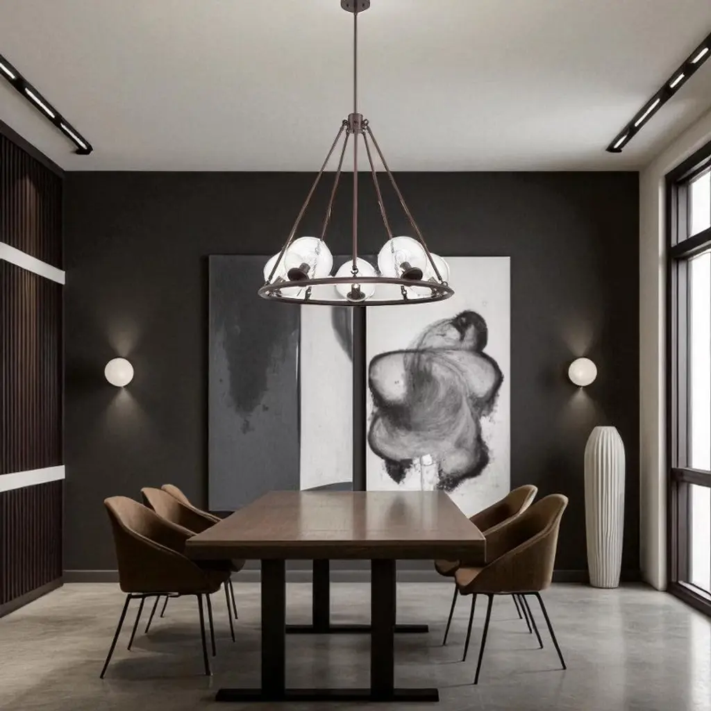 Luminance Messier 5-Light Chandelier, Clear Seeded Glass Globes, Dimmable, Provincial Bronze A striking five-light chandelier that pairs a rich Provincial Bronze finish with sparkling clear seeded glass globe shades. Perfect for dining rooms, living areas, and entryways, Messier delivers bright, elegant illumination and a timeless silhouette suitable for transitional or modern spaces. Key Features: • Five-light design with clear seeded glass globe shades for vivid, sparkling light • Provincial Bronze finish complements a wide range of interiors • Dimmable with compatible bulbs/switch (not included) to set the perfect ambiance • Ideal centerpiece for dining rooms, living rooms, and foyers Specifications: • Brand/Collection: Luminance Messier • Model/Part Number: F26115-64 • Finish: Provincial Bronze • Glass: Clear Seeded (Globe) • Number of Bulbs: 5 (not included) • Maximum Wattage: 60W each • Voltage: 120V • Dimensions: 3.75" L × 3.75" W × 75" H