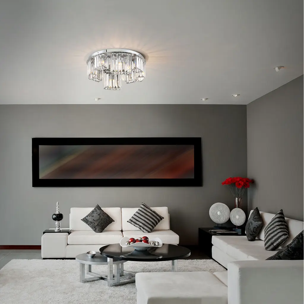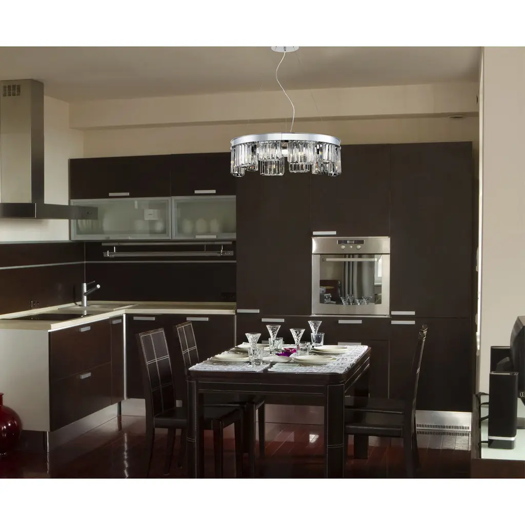Lumino Inset Clear Glass Prism Chandelier, Polished Chrome Finish, 10 G9 Light Bulbs, 25.5 Inches in Diameter