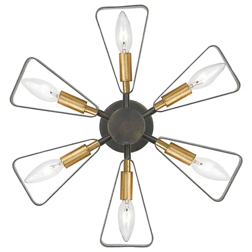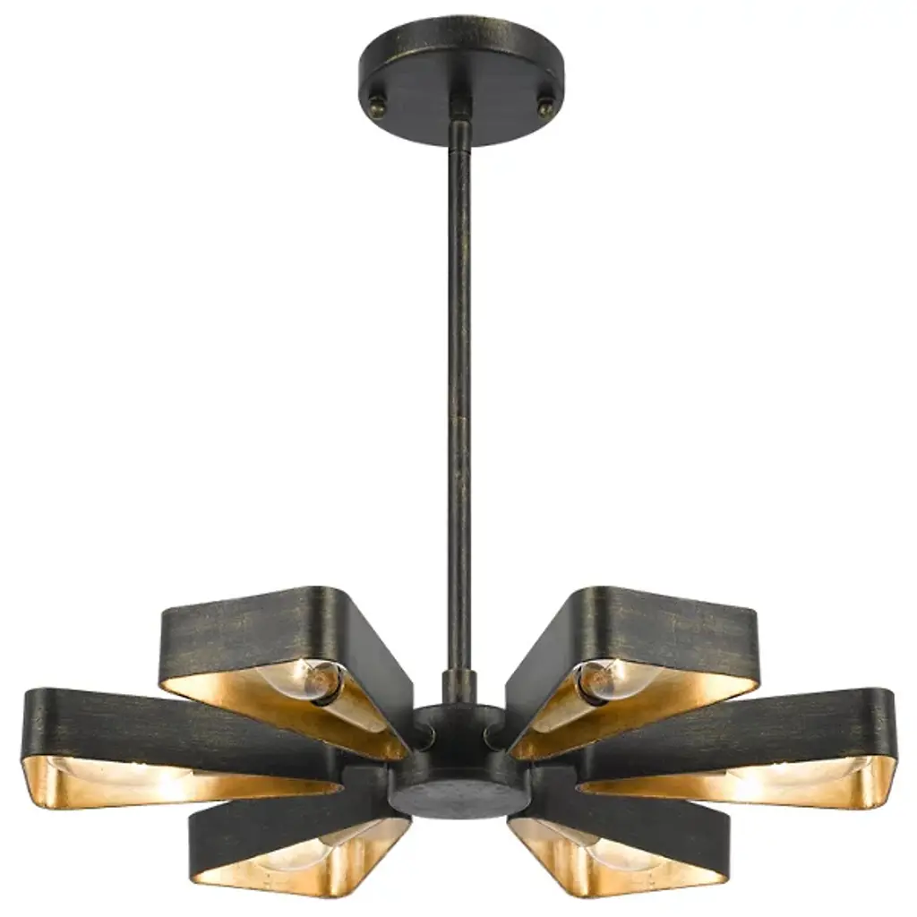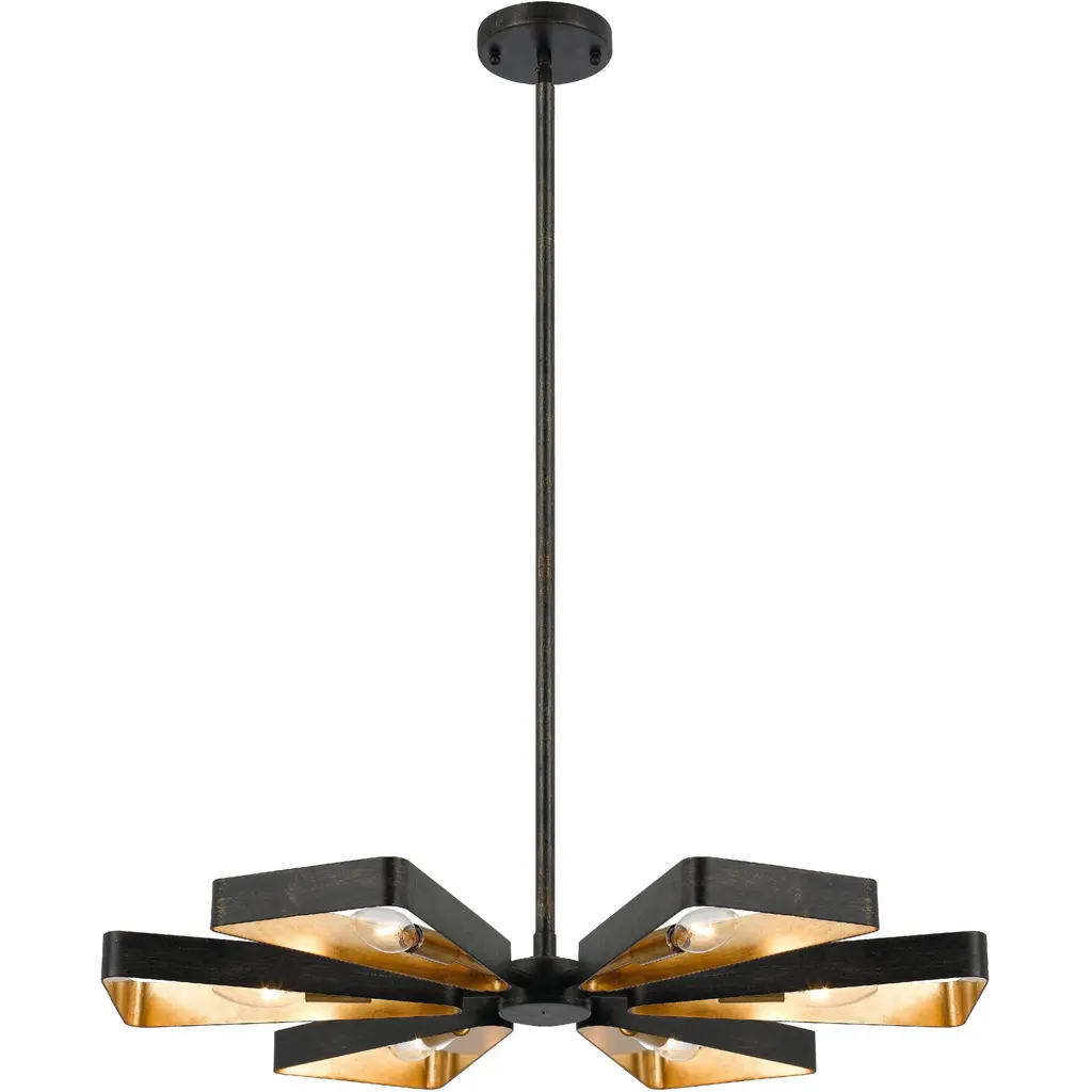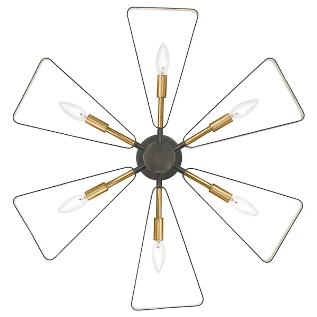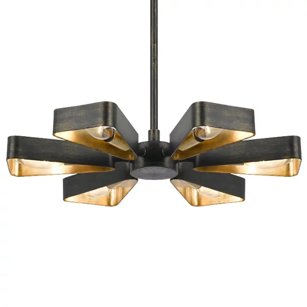 The Crystorama Luna 6 Light Chandelier/Wall Sconce brings an innovative and new shape to the world of ceiling lighting fixtures. The shape being influenced by industrial design, 6 Steel frames have been formed around an exposed bulb, reminiscent of fan blades. The illumination brings attention to the interior of the frames, dispersing their glow on the Steel with a warm ambiance.