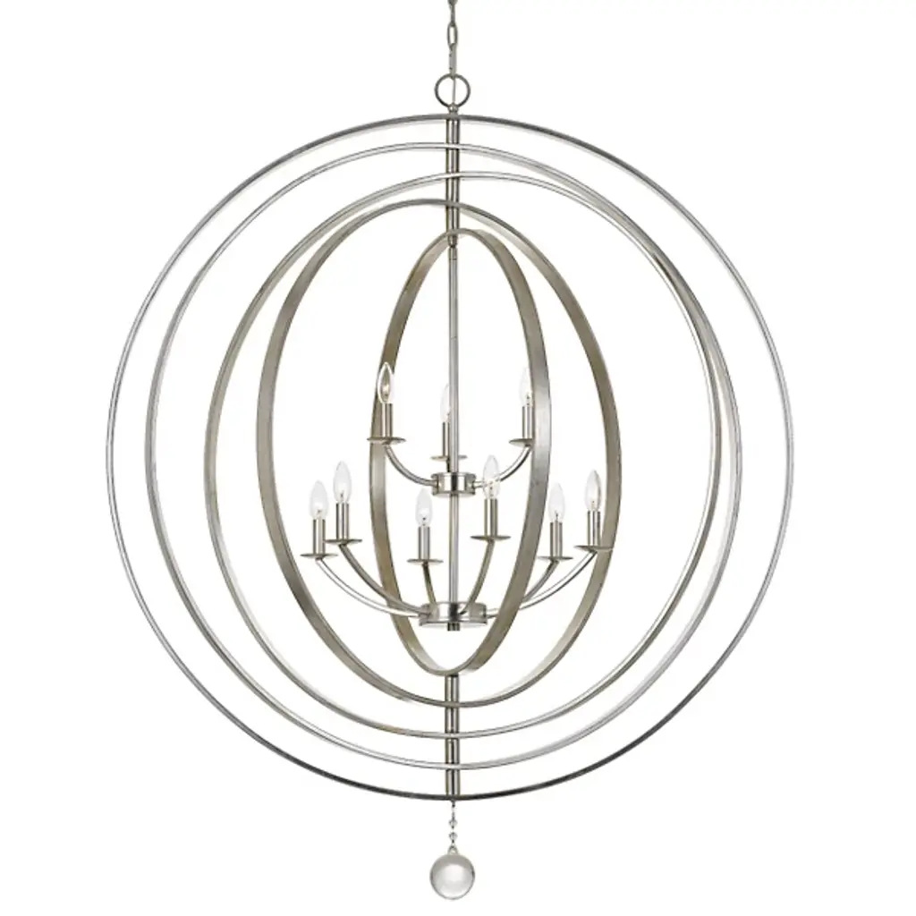 The Crystorama Luna 9-Light Chandelier is a statement making lighting option that also functions as a piece of modern art. The many rings encircling the exposed bulbs are adjustable, giving you a hands-on experience to find the perfect composition for your space. The classic tiered candelabra bulbs paired with such innovation and creativity results in a timeless yet bold fixture that will complement a range of interior styles.