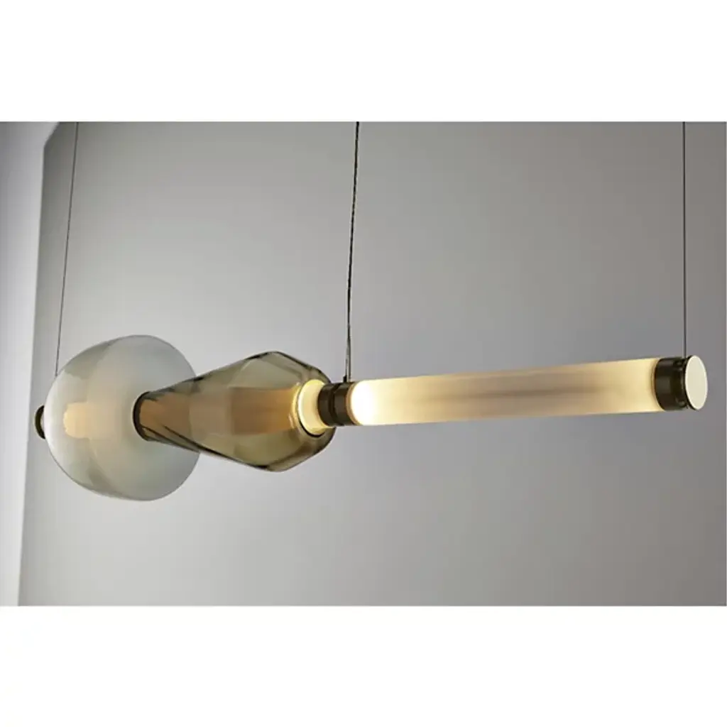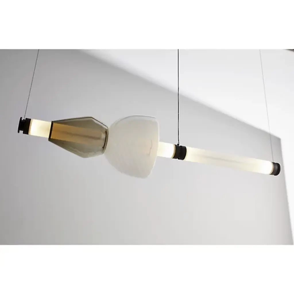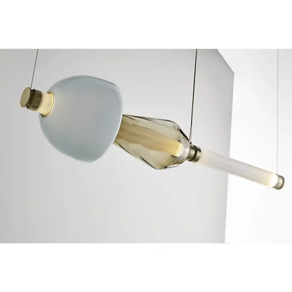 The Luna Kaleido Chandelier by Gabriel Scott is an elegant, enchanting way to bring a soft glow to spaces. Inspired by a kaleidoscope and coming from the Greek words for beautiful (kalos), form (edios), and to look at (skopeo), this piece was designed to offer infinite interpretations of shape, tone, texture, and refracted light. Crafted from mouth-blown glass beads and pieces that are strung together like a piece of bespoke jewelry, this glass mosaic filters a captivating, inviting layer of illumination throughout its form, bringing an artful, magical quality to its environment.