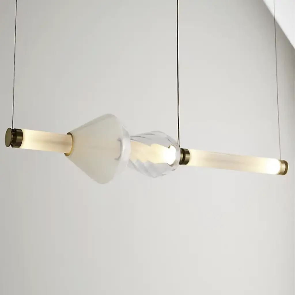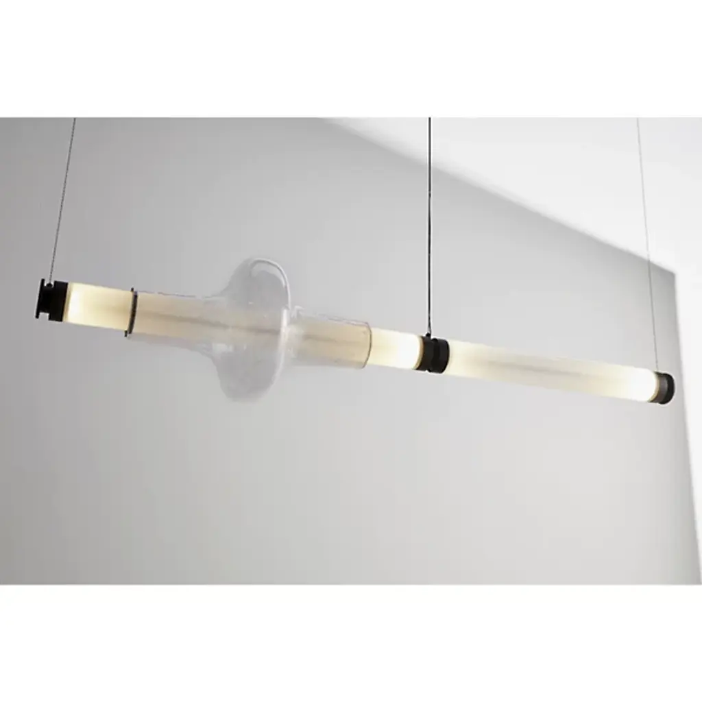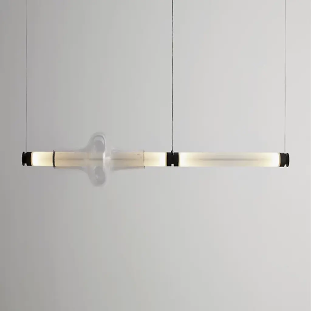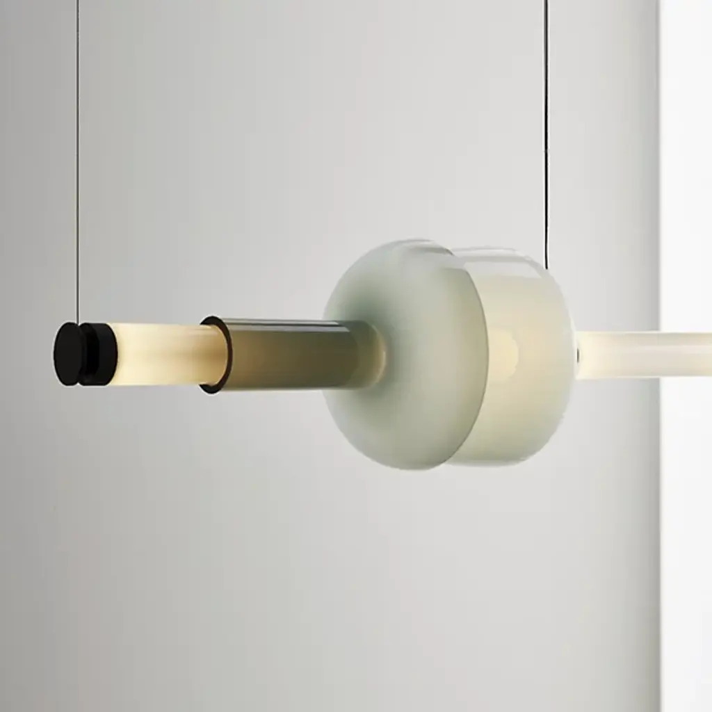 The Luna Kaleido Chandelier by Gabriel Scott is an elegant, enchanting way to bring a soft glow to spaces. Inspired by a kaleidoscope and coming from the Greek words for beautiful (kalos), form (edios), and to look at (skopeo), this piece was designed to offer infinite interpretations of shape, tone, texture, and refracted light. Crafted from mouth-blown glass beads and pieces that are strung together like a piece of bespoke jewelry, this glass mosaic filters a captivating, inviting layer of illumination throughout its form, bringing an artful, magical quality to its environment.