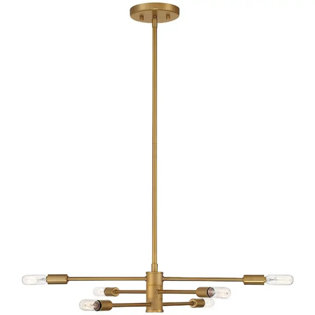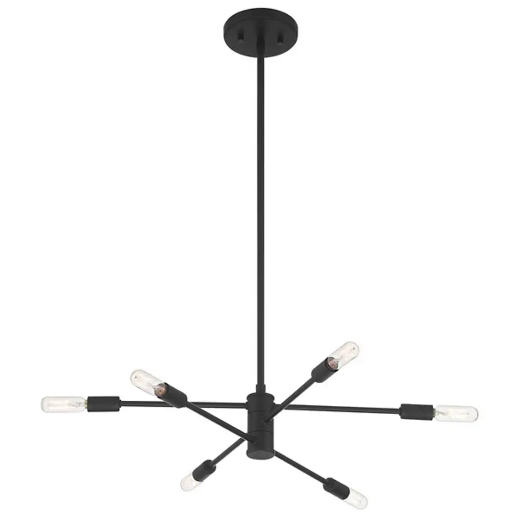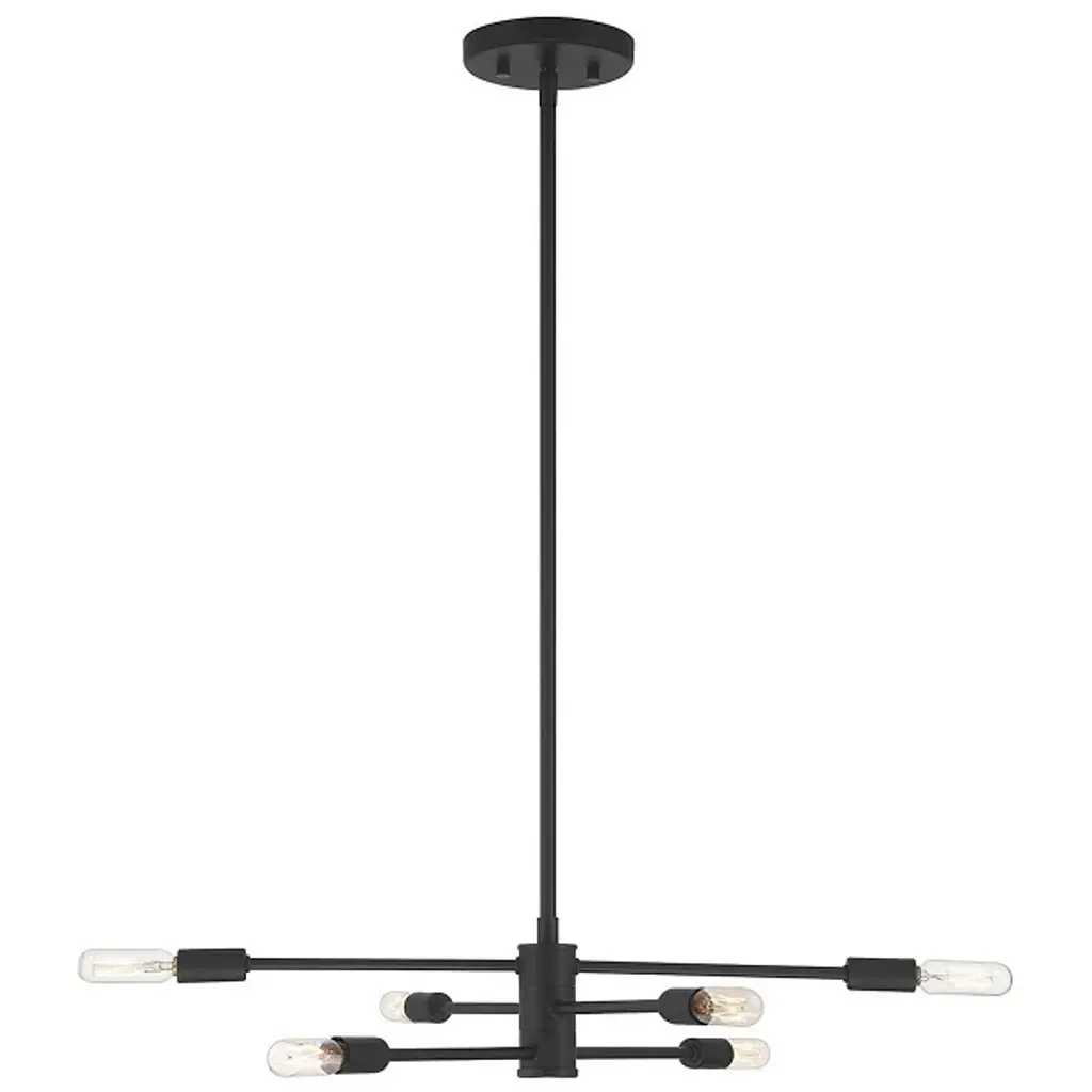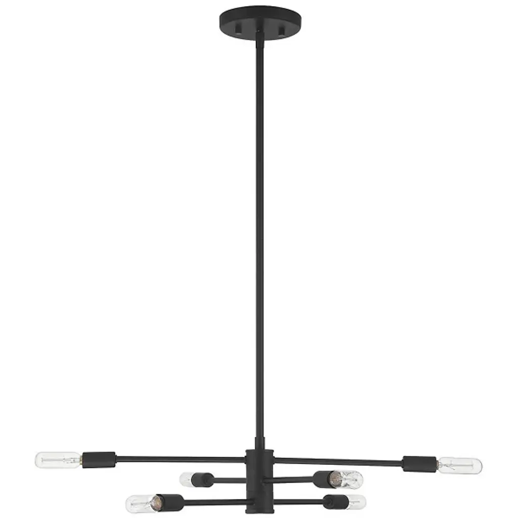 Make your own minimalist statement with the Lyrique Chandelier by Savoy House. Its streamlined form features three separate, adjustable metal rods that are capped at both ends by tungsten Edison bulbs. Once on, the luminaires provide a warm, unfettered light that shimmers off the surrounding metal, bringing a stunning custom look to your living space.