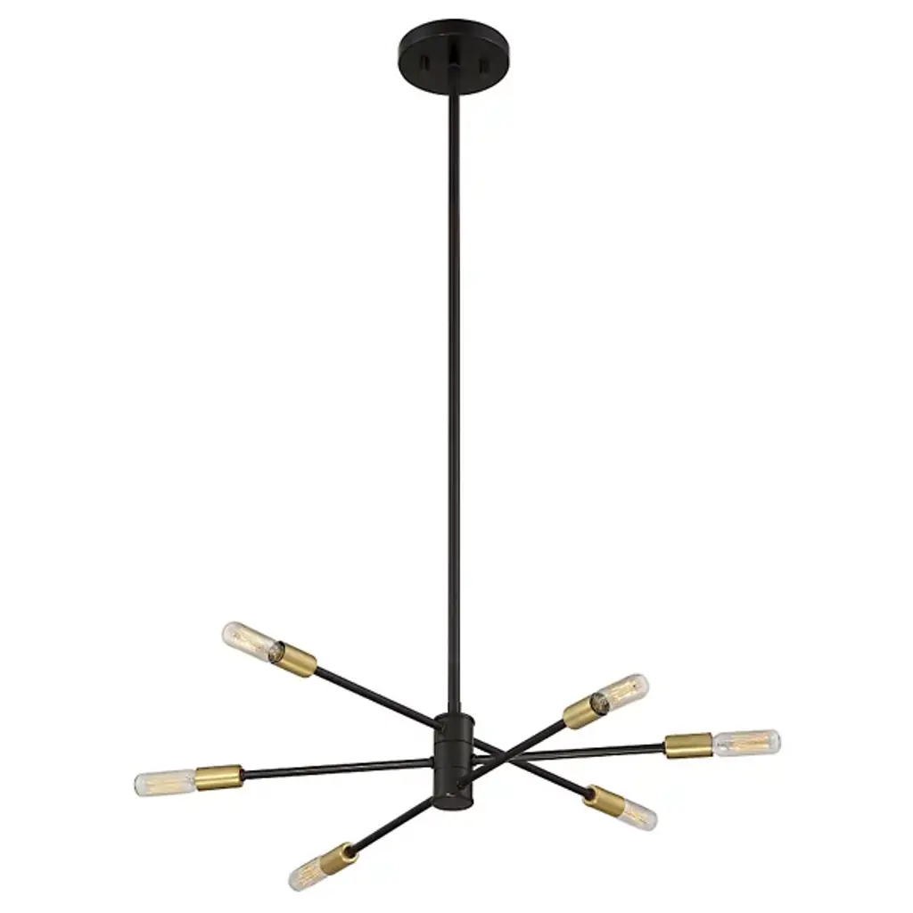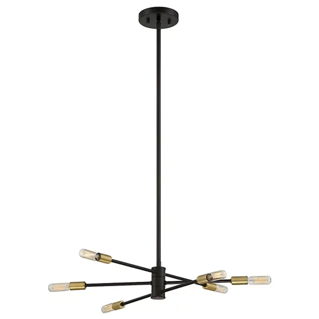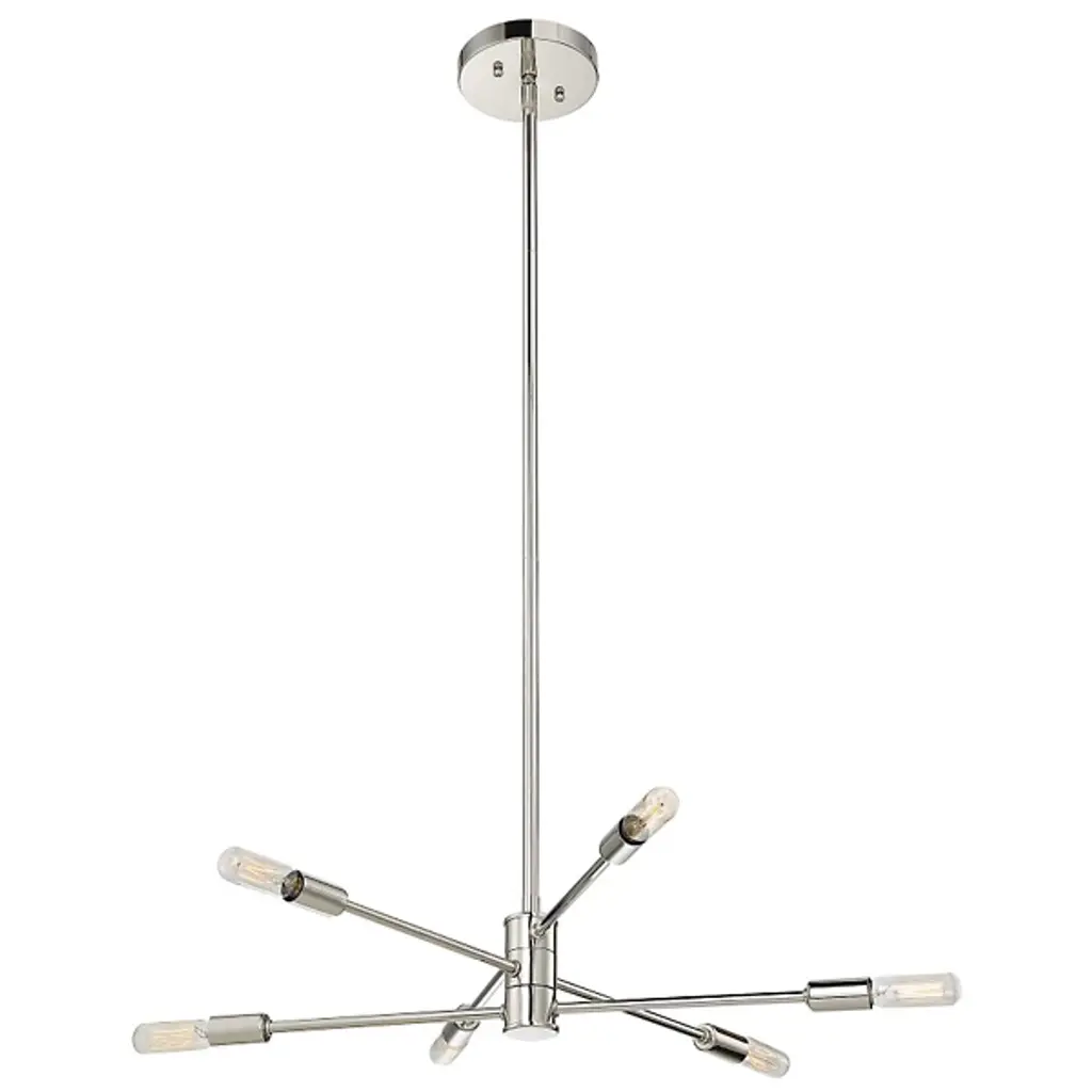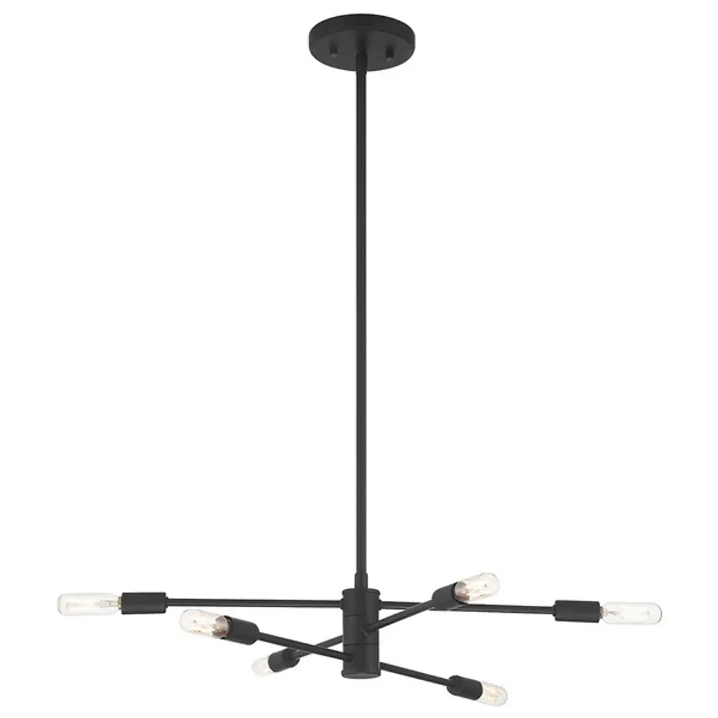 Make your own minimalist statement with the Lyrique Chandelier by Savoy House. Its streamlined form features three separate, adjustable metal rods that are capped at both ends by tungsten Edison bulbs. Once on, the luminaires provide a warm, unfettered light that shimmers off the surrounding metal, bringing a stunning custom look to your living space.