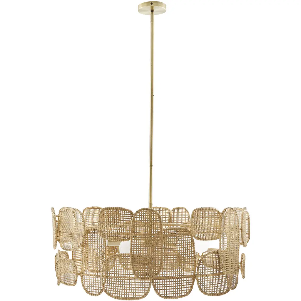 This new collection for the Smithsonian is ready to take flight. With Machina, classic design and aviation-inspired concepts come together to elevate the look of any room. A propellor motif meets midcentury aesthetics and tiki accoutrements to create a style that soars. Get ready to fly away to mod Polynesia every time you flip on the switch. Machina features sealed natural and sustainable rattan over black recycled steel.