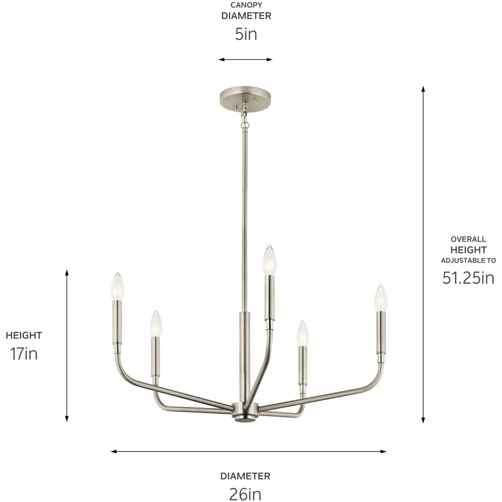 Madden 26 Inch 5 Light Chandelier in Brushed Nickel