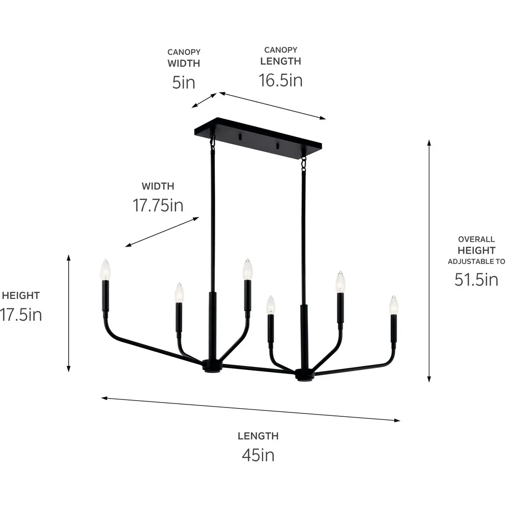 Madden 45 Inch 6 Light Linear Chandelier in Black